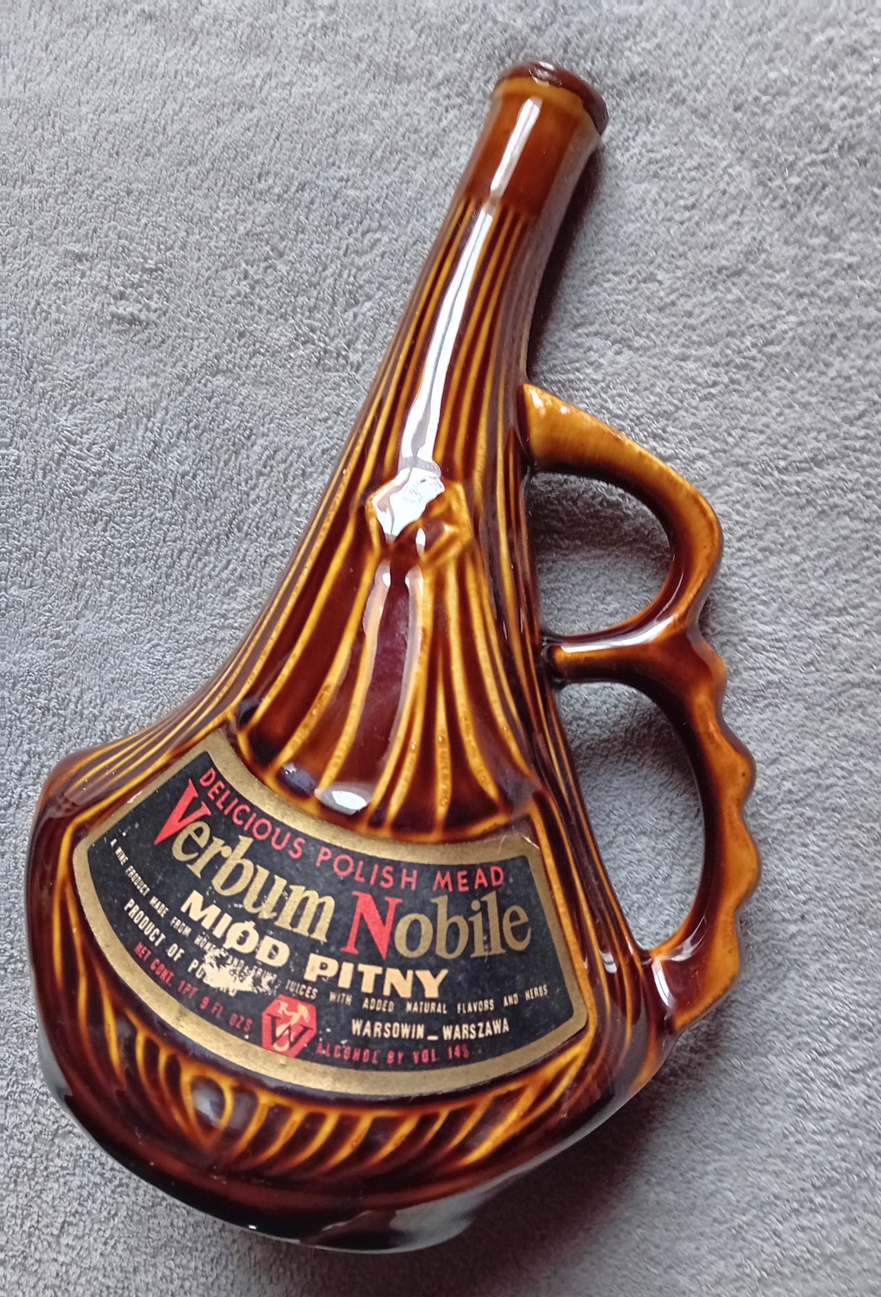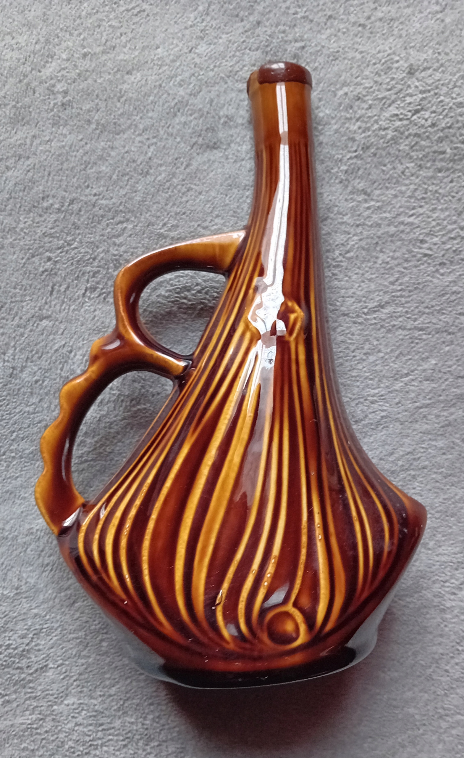 Продаю керамічний графин для медовухи, розроблений Адамом Садульським, 1970-х років. Графин підписаний, з оригінальною етикеткою для медовухи та етикеткою виробника на дні. Висота 24,5 см. Ширина в найширшому місці 16 см. В доброму стані. У зоні наповнювача є залишки лаку, який використовувався для герметизації пробки.