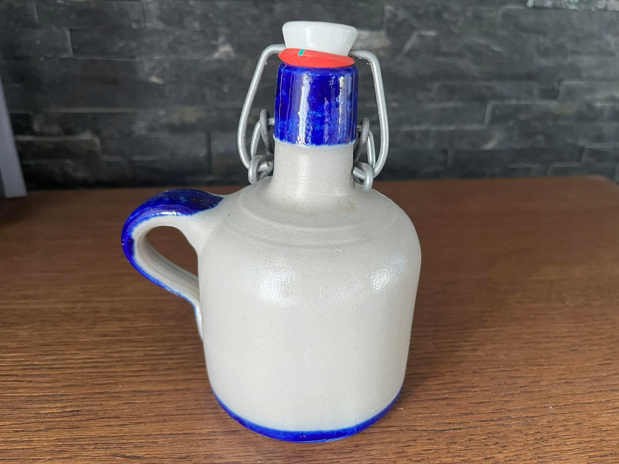 Ceramiczna ręcznie robiona malowana butelka karafka Obstler
