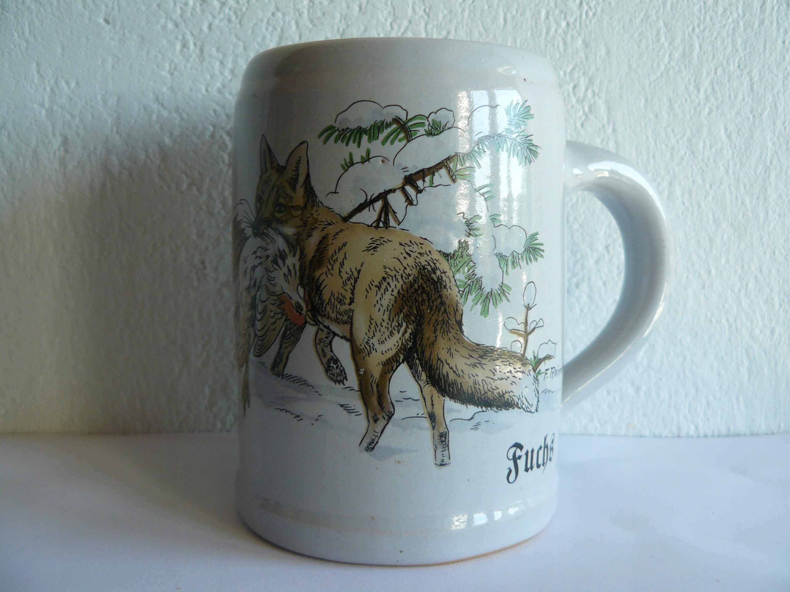 CERAMICZNY MYŚLIWSKI KUFEL LIS