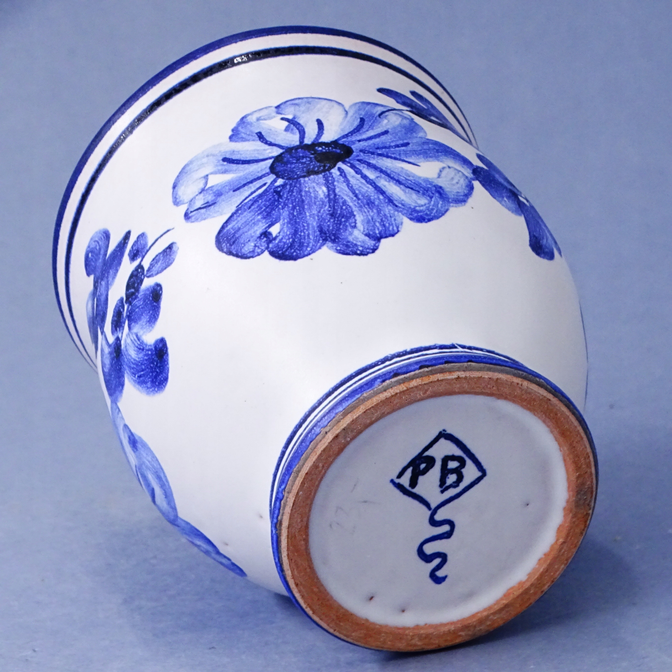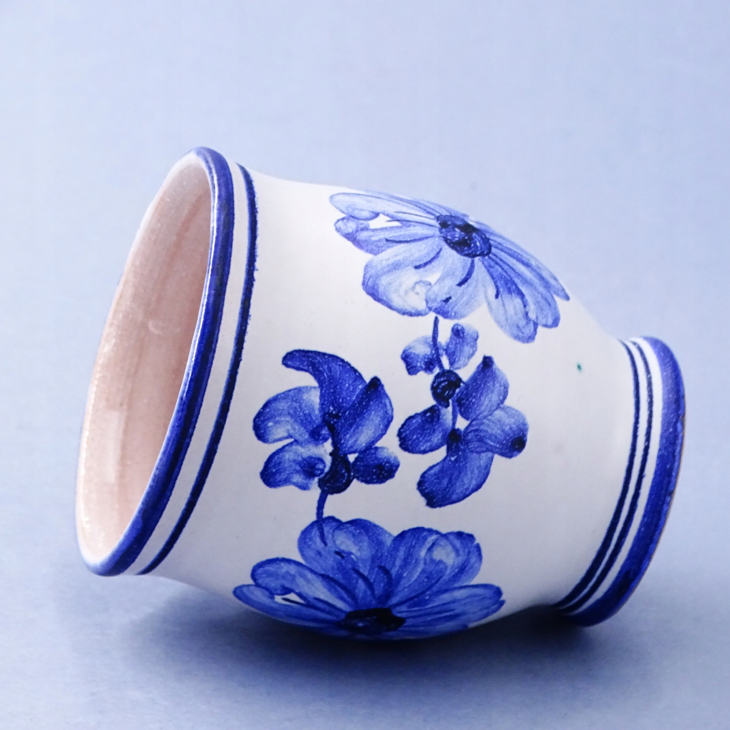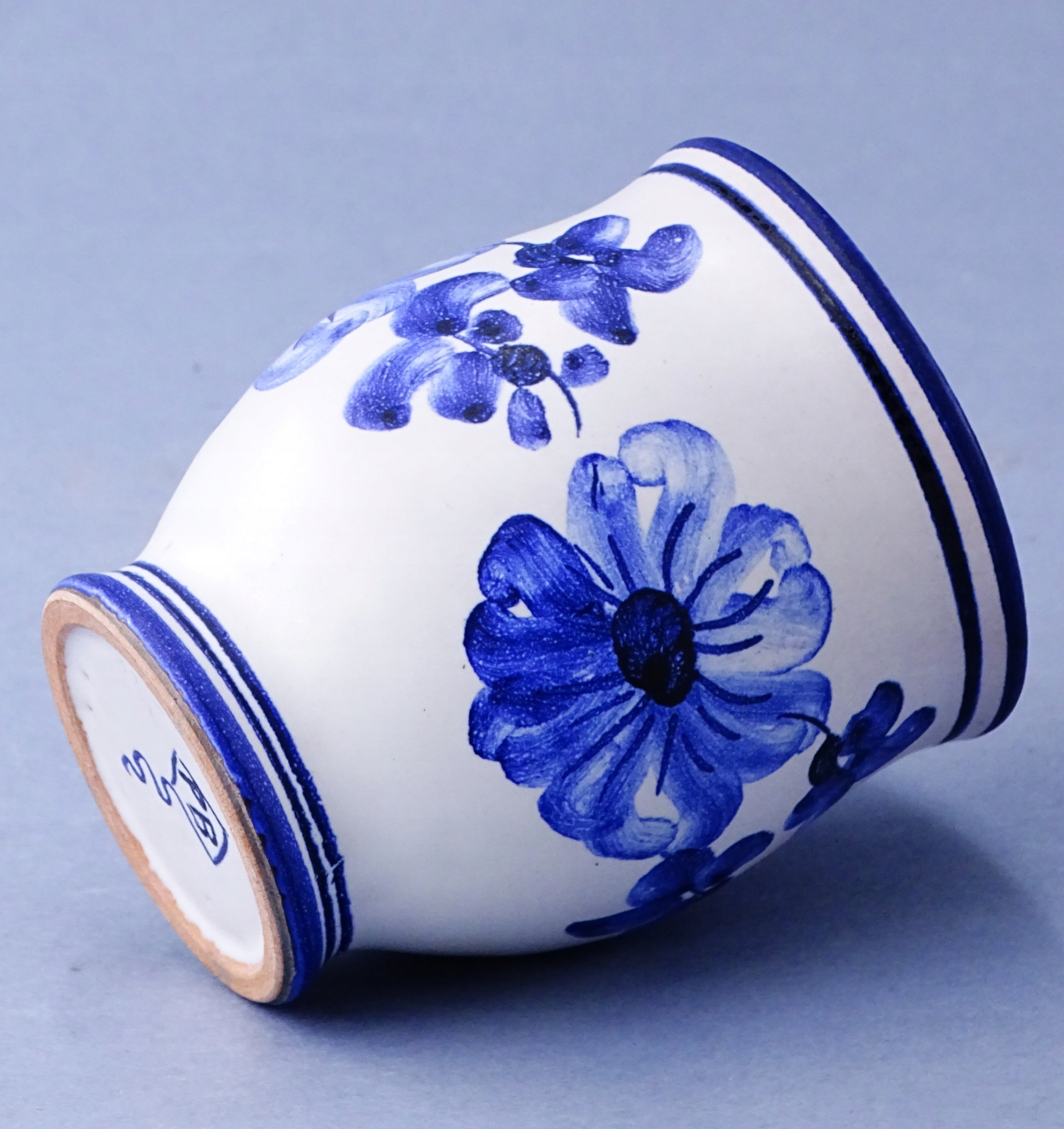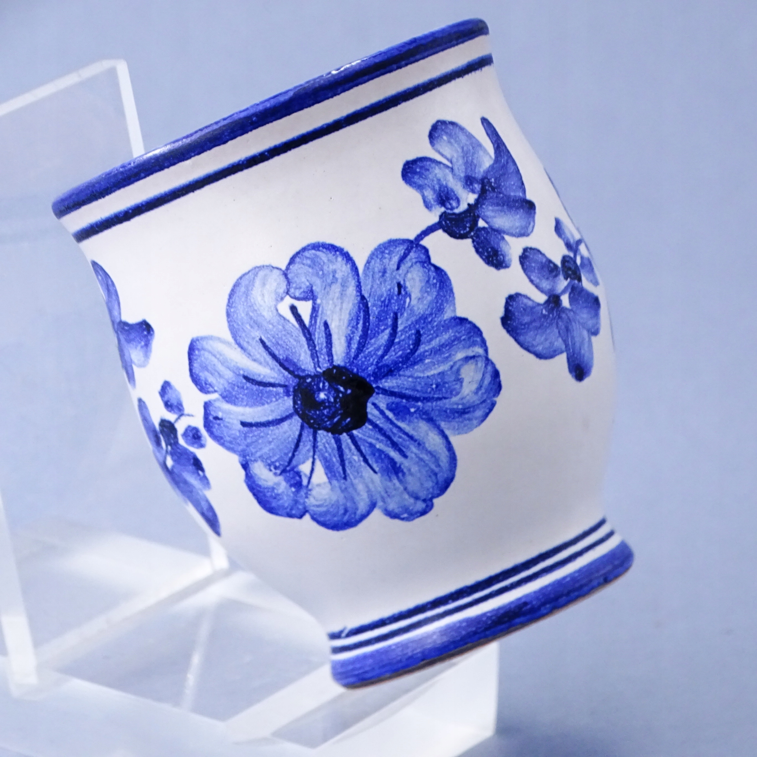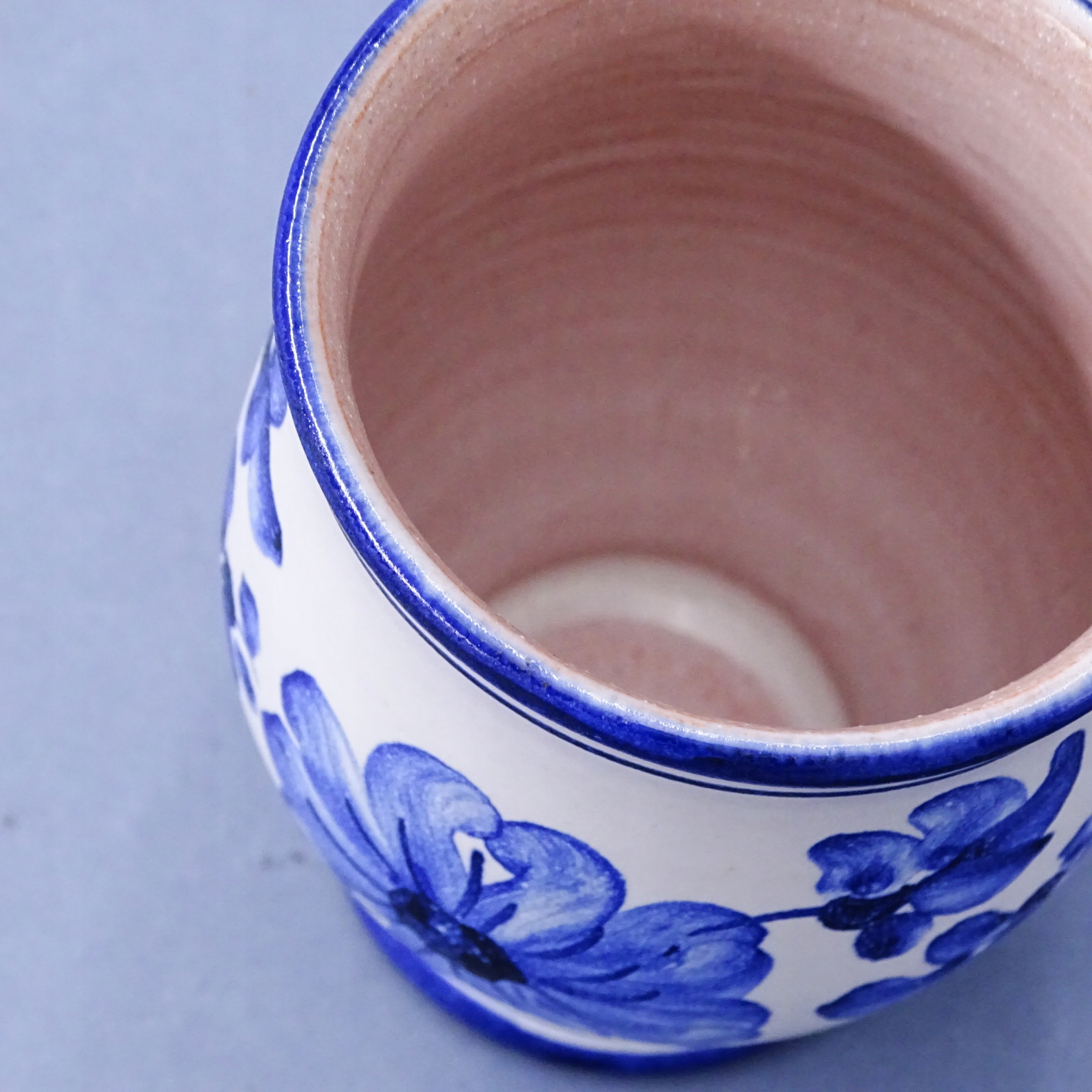 CERAMIKA AUTORSKA PIĘKNY SYGNOWANY KUBEK NACZYNIE GLINIANE NIEBIESKIE KWIAT