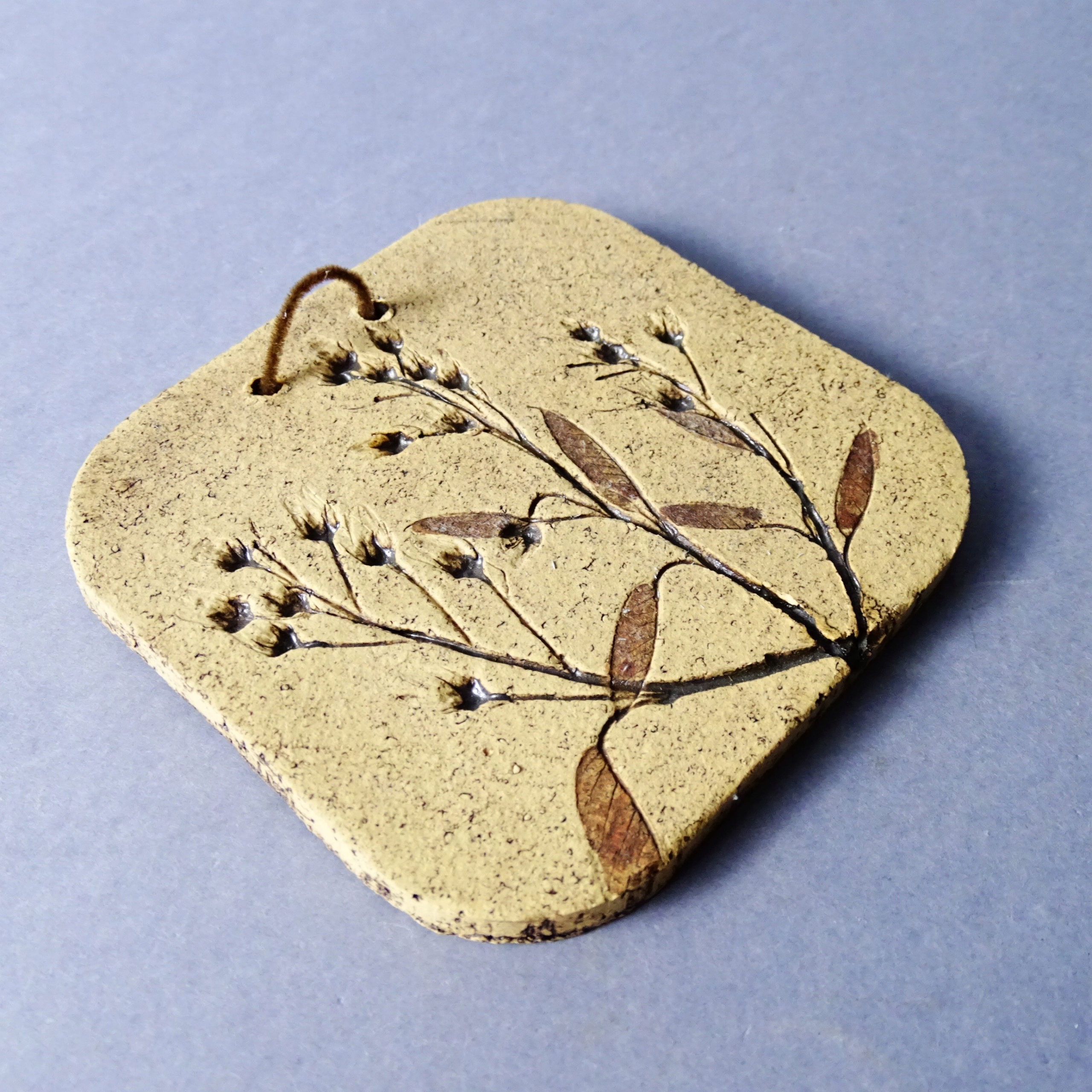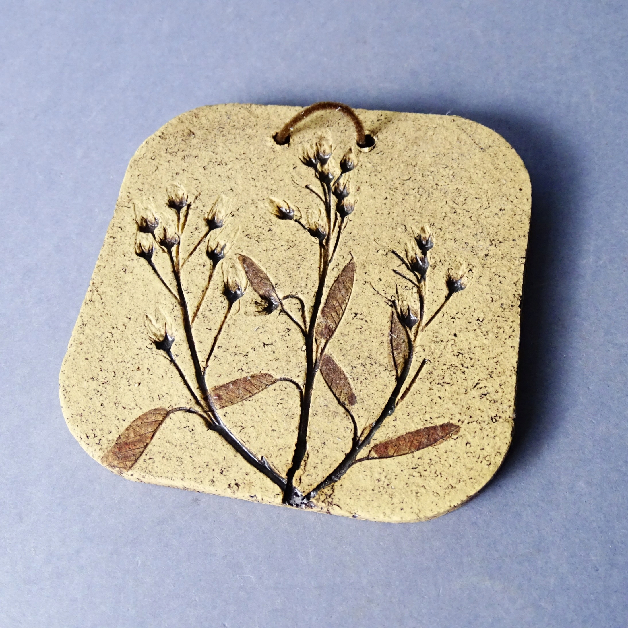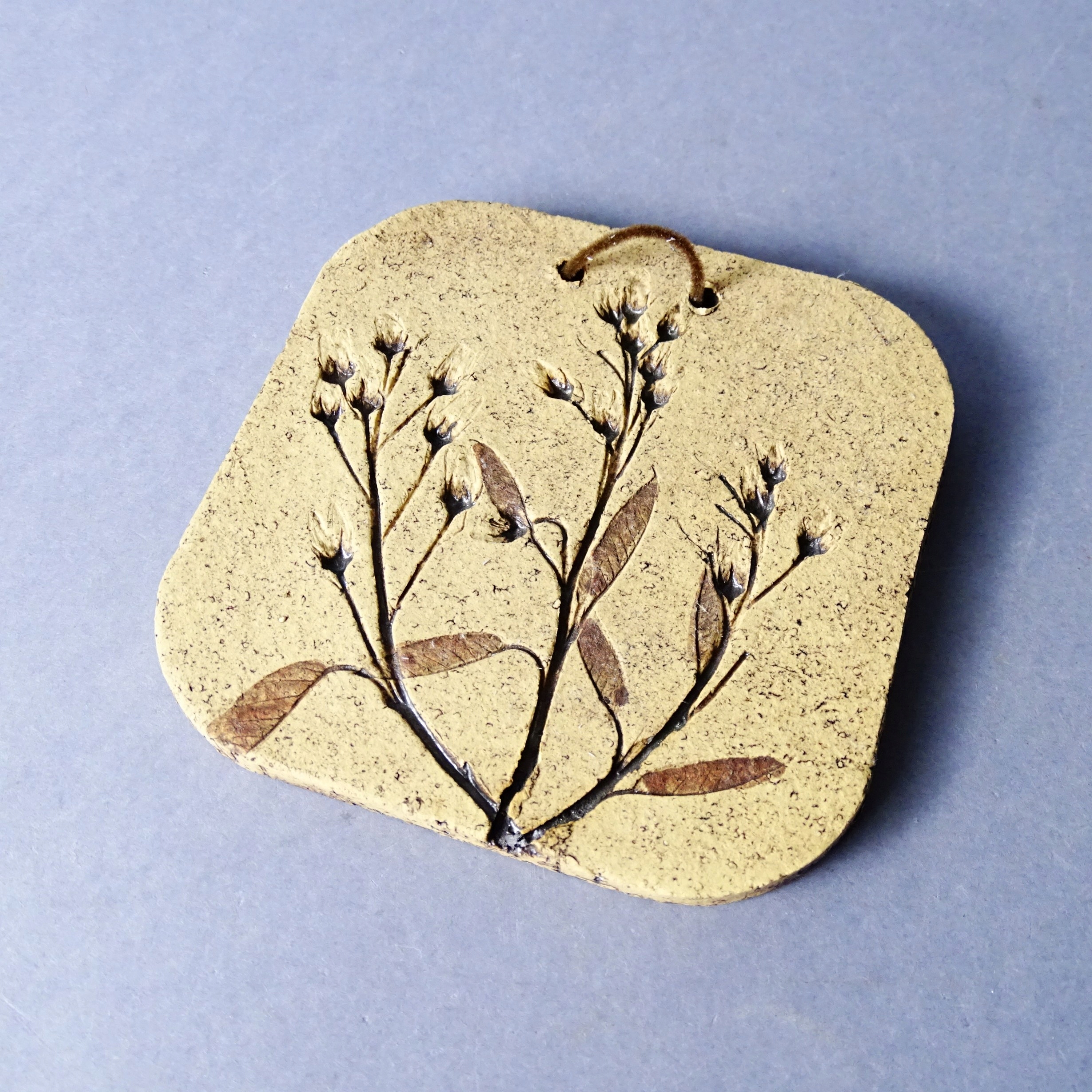CERAMIKA AUTORSKA SYGNOWANY OBRAZEK PLAKIETA GLINIANA ROŚLINY