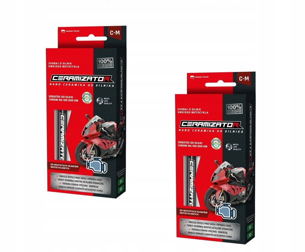 Це дозволяє значне зниження тертя і постійний захист компонентів, практично виключаючи процес їх зношування. Регулярне використання значно подовжує термін служби приводу. Один аплікатор дозволяє насолоджуватися тихою та ефективною роботою двигуна протягом тривалого часу. Нанозахист мотоцикла CERAMIZATOR C-M забезпечує захист на 100 000 км.