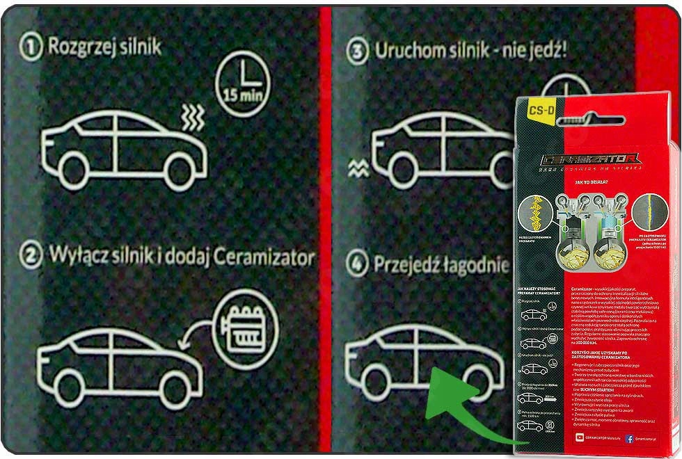 Робота продукту на практиці була представлена на TVN TURBO, GALILEO та на каналі YOUTUBE . Керамічні наночастинки, що містяться в CERAMIZER, змішуються з маслом і розподіляються по частинах двигуна. Осідаючи на таких поверхнях, як внутрішня частина циліндра, опорні поверхні підшипників або поршні, під дією високої температури та тиску вони з'єднуються з металом. Таким чином, створюючи новий шар, вони ущільнюють циліндри та згладжують поверхні, зменшуючитертя. Покращено відповідність взаємодіючих елементів двигуна, що призводить до його кращої роботи та продовження терміну служби його частин. Отже, CERAMIZER має можливість у старішому двигуні впливати на потужність, збільшення тиску в циліндрі та зменшення робочий шум. p>