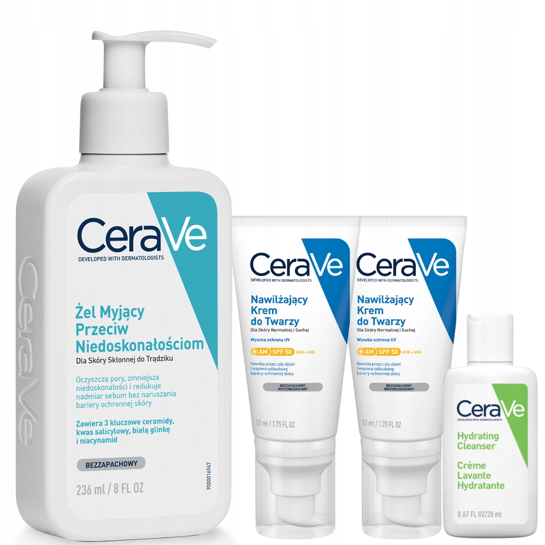 CeraVe зволожуючий крем для обличчя SPF50 52 мл x 2 очищувальний гель 236 мл + БЕЗКОШТОВНО