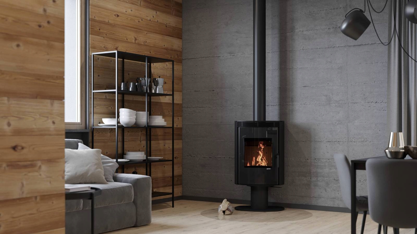 Сучасна плита з цилідрусними формами, що відповідає стандартам Ecocroject. Це ідеальна реакція на сучасні мінімалістичні тенденції в архітектурі та дизайні інтер'єру. Овальна форма печі та її невелика камера згоряння підходять для енергозамостійних будинків. This stove will be perfectly found in smaller rooms