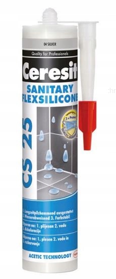 Силікон CESIT CS 25 використовується для заповнення стиків між керамічними плитками в стінах стін і в стінах стін з підлогою та заповнення прогалин між плиткою та санітарними спорудами. Він забезпечує тісне з'єднання в місцях, де звичайні стики тріснуть. Завдяки тривальній гнучкості та водостійкості, CS 25 підходить для герметизації розширювальних з'єднань, що проходять через мокрі кімнати. Силікон призначений для використання в ванних кімнатах, кухнях, туалетах, кабінах для душу, а також на зовнішніх будівлях.