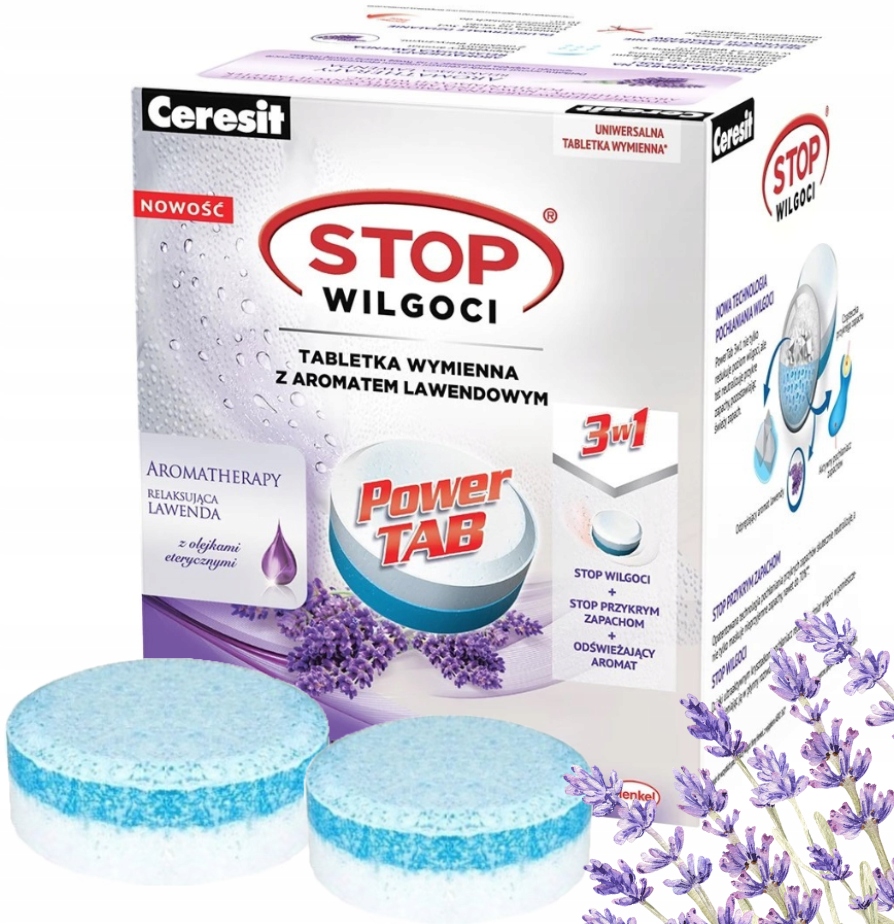 Змінні таблетки Powertab 3IN1 ароматизатором лаванди допомагають ефективно боротися з вологою, при цьому нейтралізуючи покритий запах, а також додатково розповсюджуйте делікатний запах у приміщенні. Вони забезпечують комфорт у кожному будинку, офісі, підвалі тощо. Вони використовують сучасну систему, яка гарантує відмінну циркуляцію повітря та повний захист від вологи, неприємних запахів, цвілі, грибів, алергії тощо
