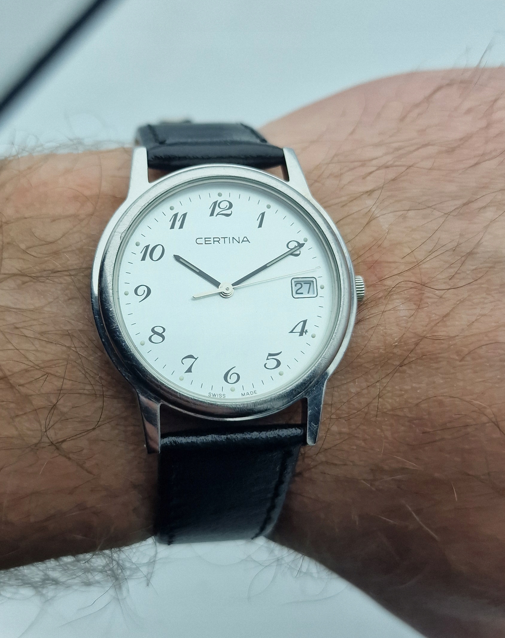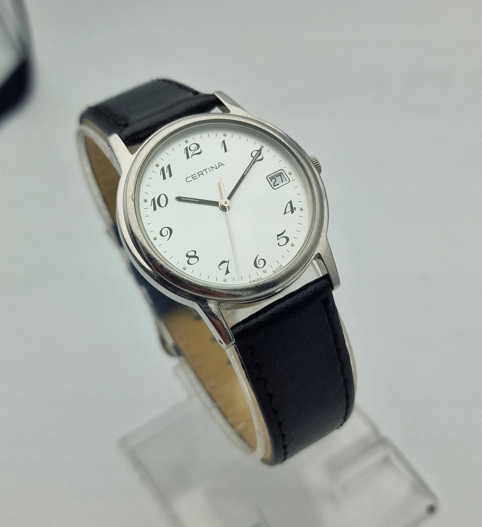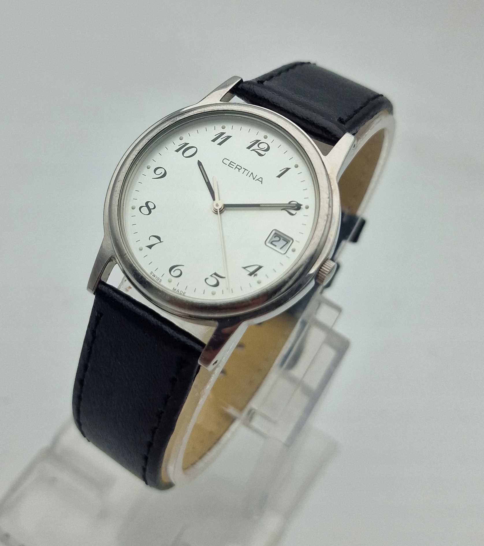 - Срібний металевий диск з датою на трьох годинах. Оригінальний щит, підписаний: " certina, швейцарська зроблена ". Щит у ідеальному стані, показаний на знімках.