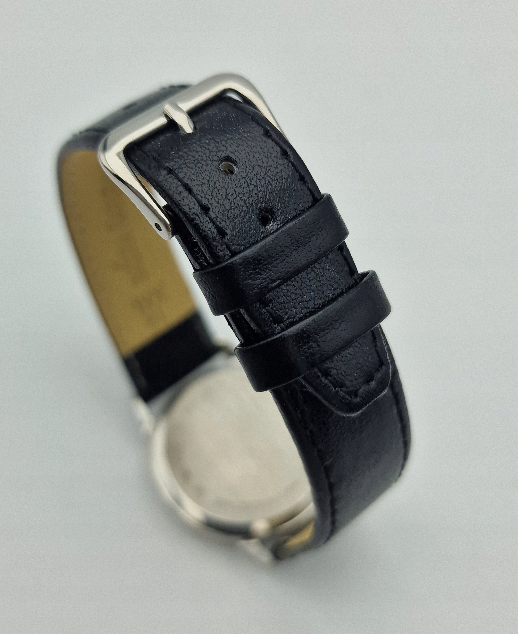 - Діаметр годинника 3.4 см без мережива та ручки має ремінь. Висота з ручками 3,9 см. Новий чорний пояс, виготовлений з натуральної шкіри.