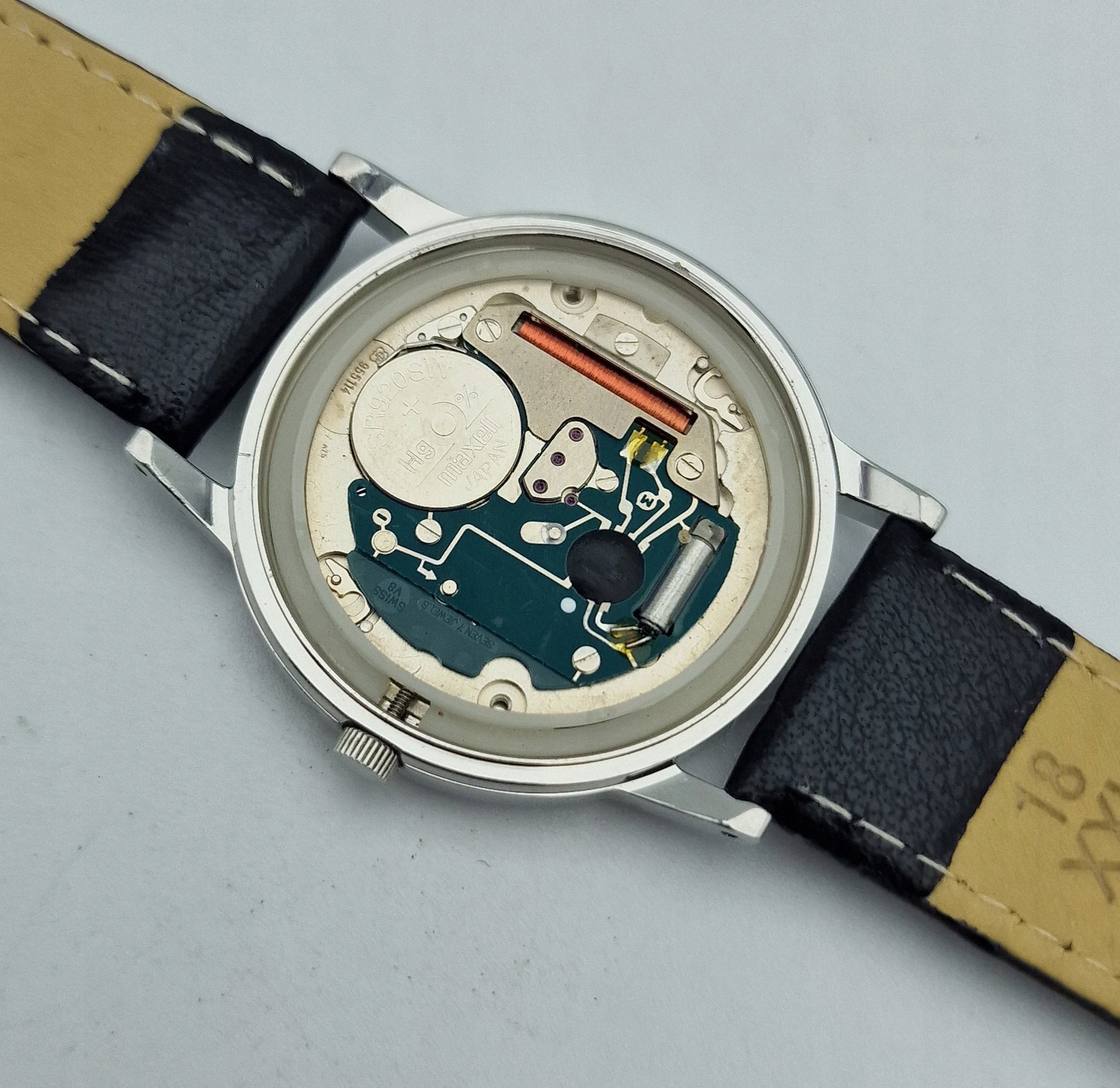 - Швейцарський механізм годинника " ETA 955.114" з кварцовим приводом. Механізм на доброму та пунктуальному прогулянці, у відмінному стані. Він має нову батарею, тому покупець має близько 2 років миру.
