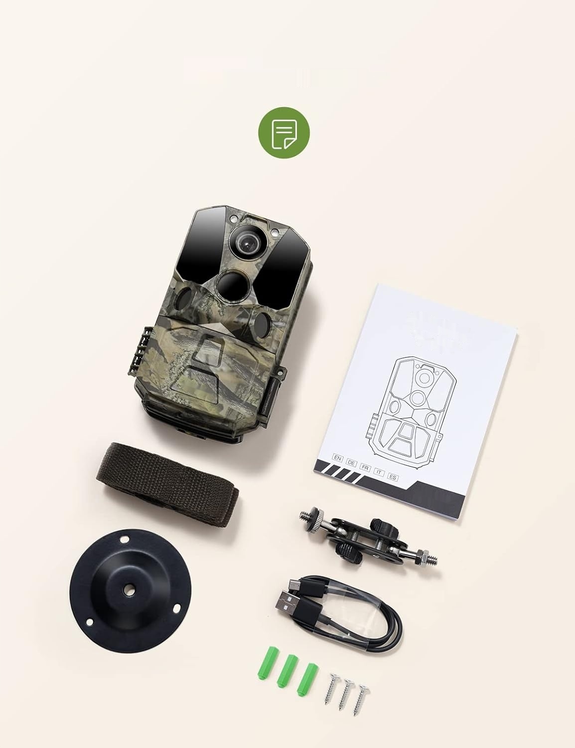 Камера можна використовувати для різних цілей, таких як спостереження за дикою природою, полюванням та моніторингом сільськогосподарських районів. Слід пам’ятати, що SD -карта та акумулятори не включаються до набору.