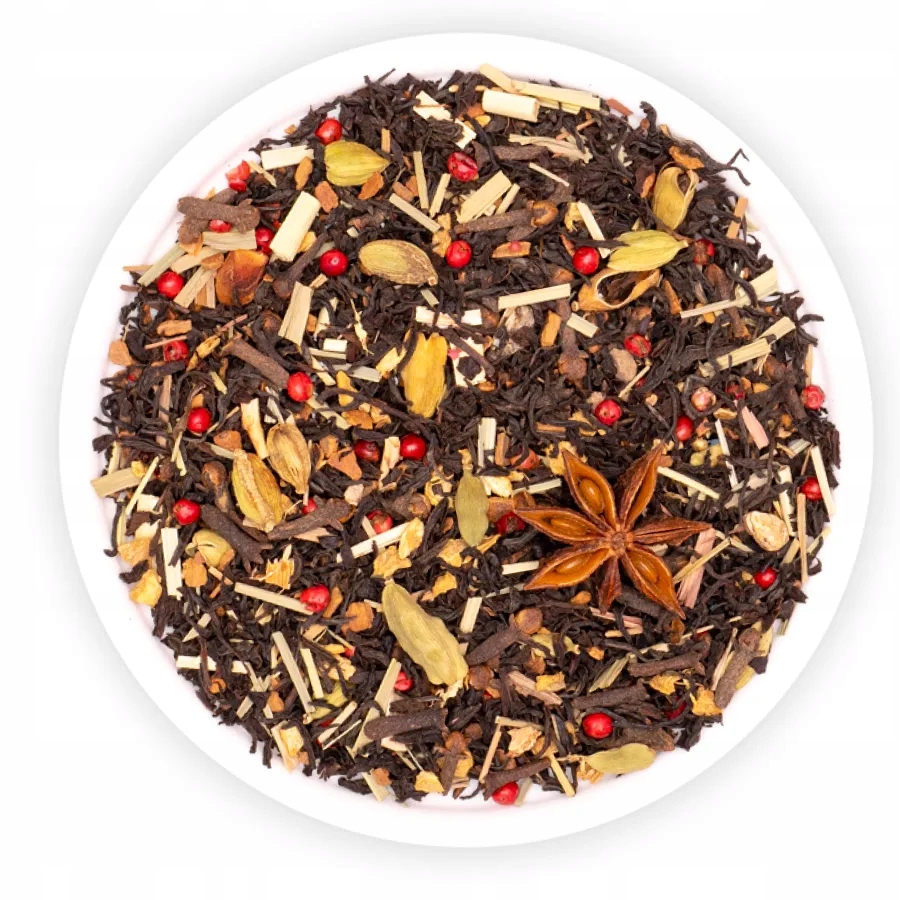 Суміш із чорним чаєм Ассам походить з Індії, де смак і запах походять від таких спецій, як кардамон, кориця, гвоздика, мускатний горіх і імбир.