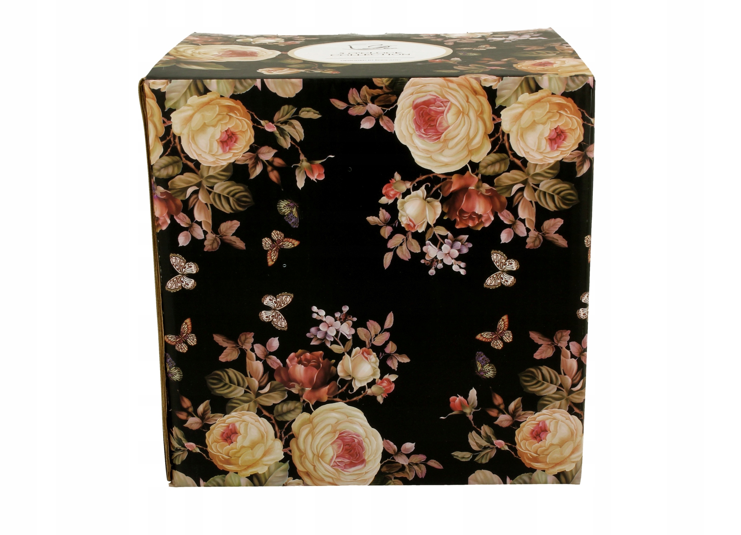 Лінія характеризується характерним мотивом чайних троянд у теплих кольорах на інтенсивно чорному тлі.