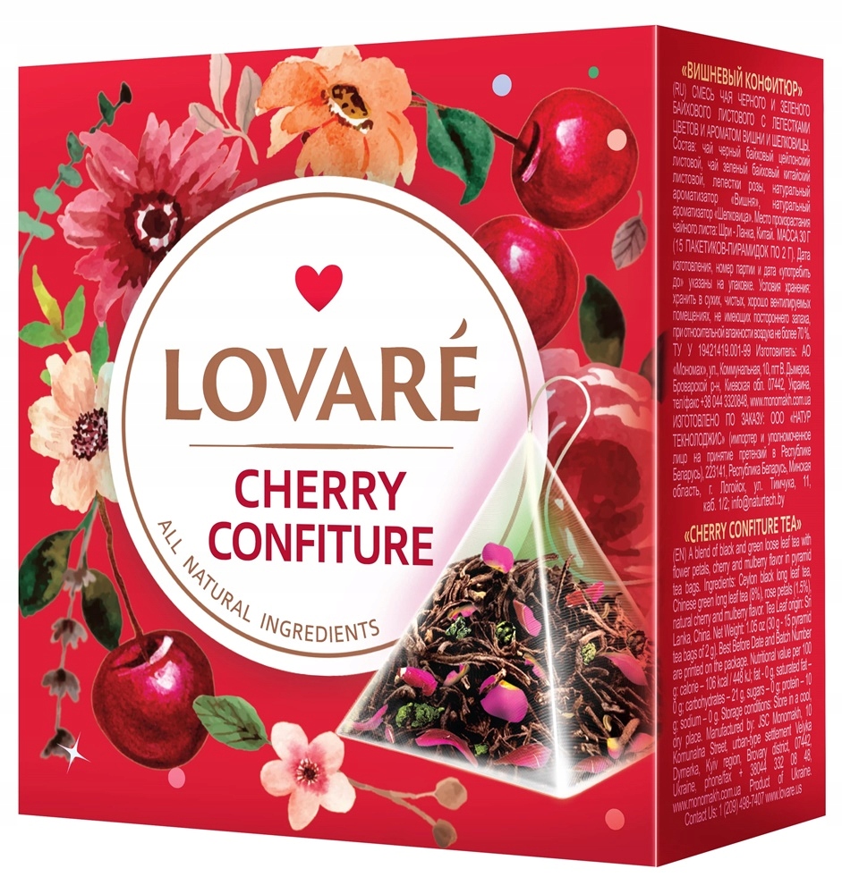 Заказывая «ЧАЙ LOVARE ВИШНЕВИЙ КОНФІТЮР 15 пірамід» данный товар из каталога «Смешанный чай» вы можете быть уверены, что после оформления заказа, доставки в Украину, вы получите именно то, что заказывали, в оговоренные сроки и европейского качества.