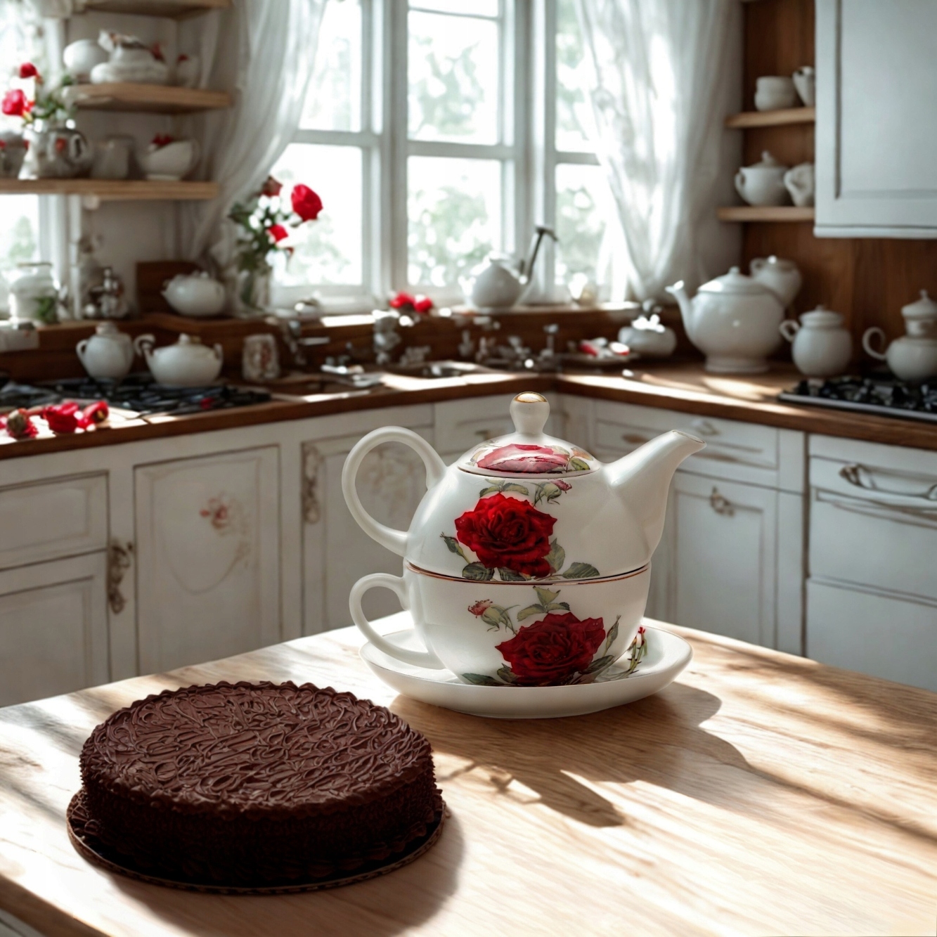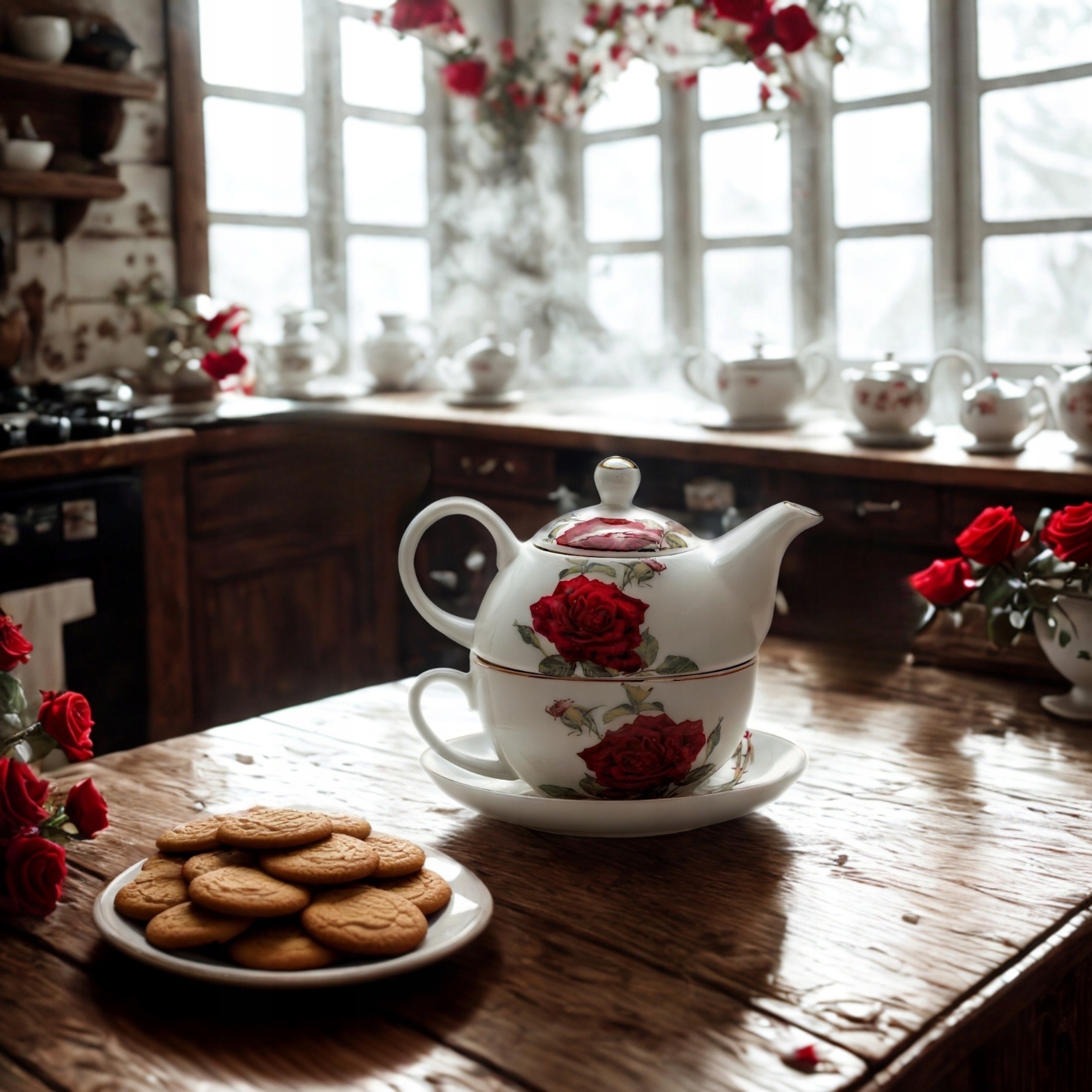 - набір «ЧАЙ ДЛЯ ОДНОГО», з мотивом різнокольорових троянд