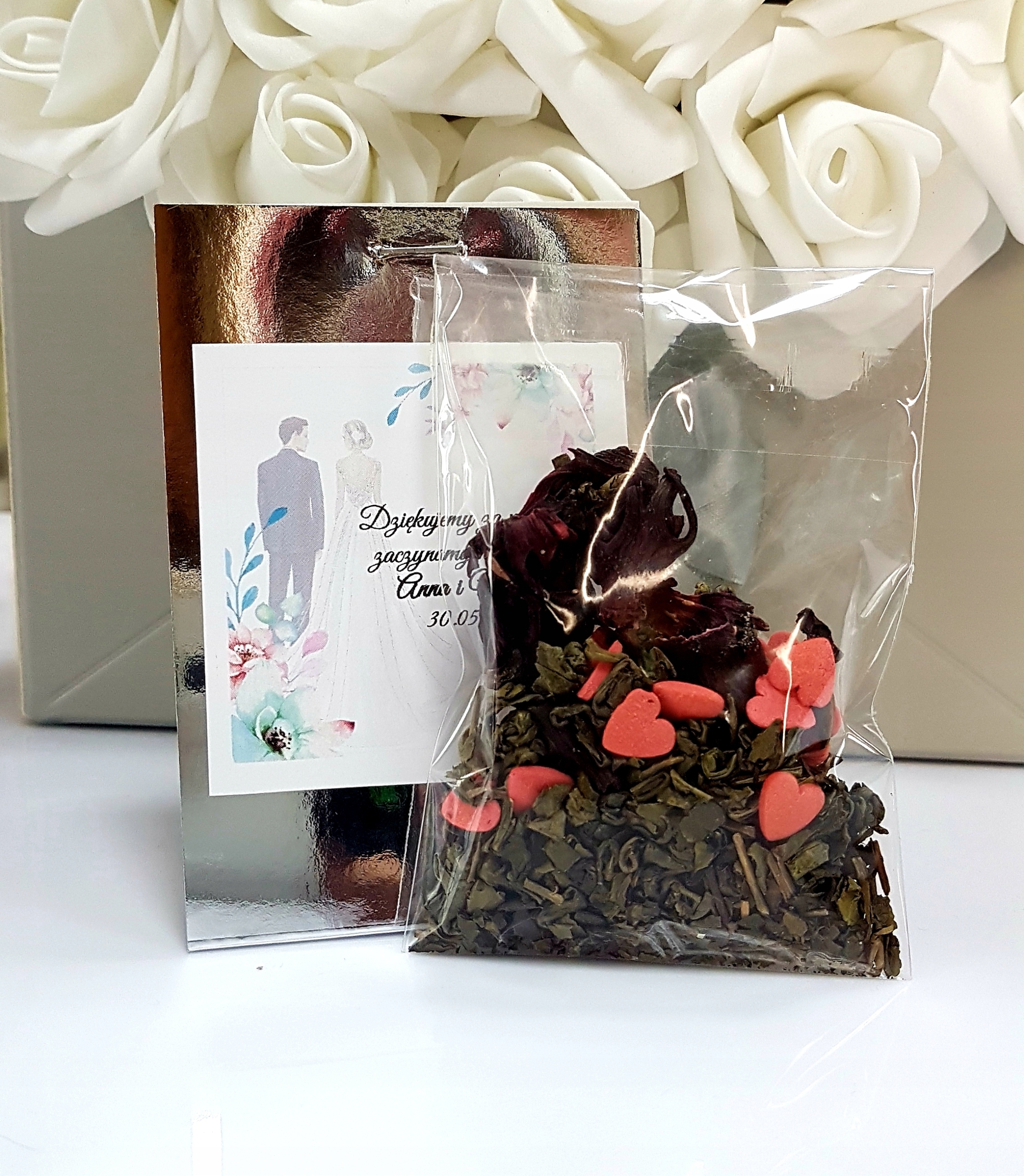 Зелений чай з гібіскусом і цукровими сердечками - Подарунки гостям!