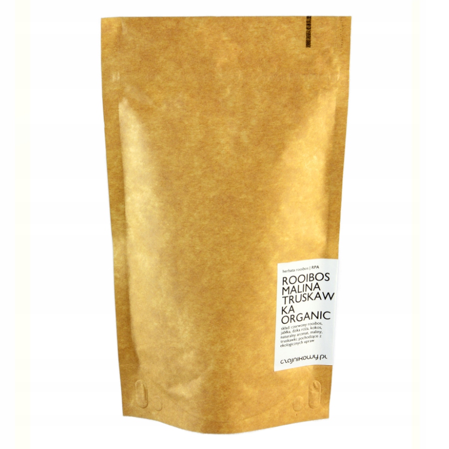 Склад: ройбуш червоний, яблука, шипшина, кокос, натуральний аромат, малина, полуниця; з органічного землеробства.