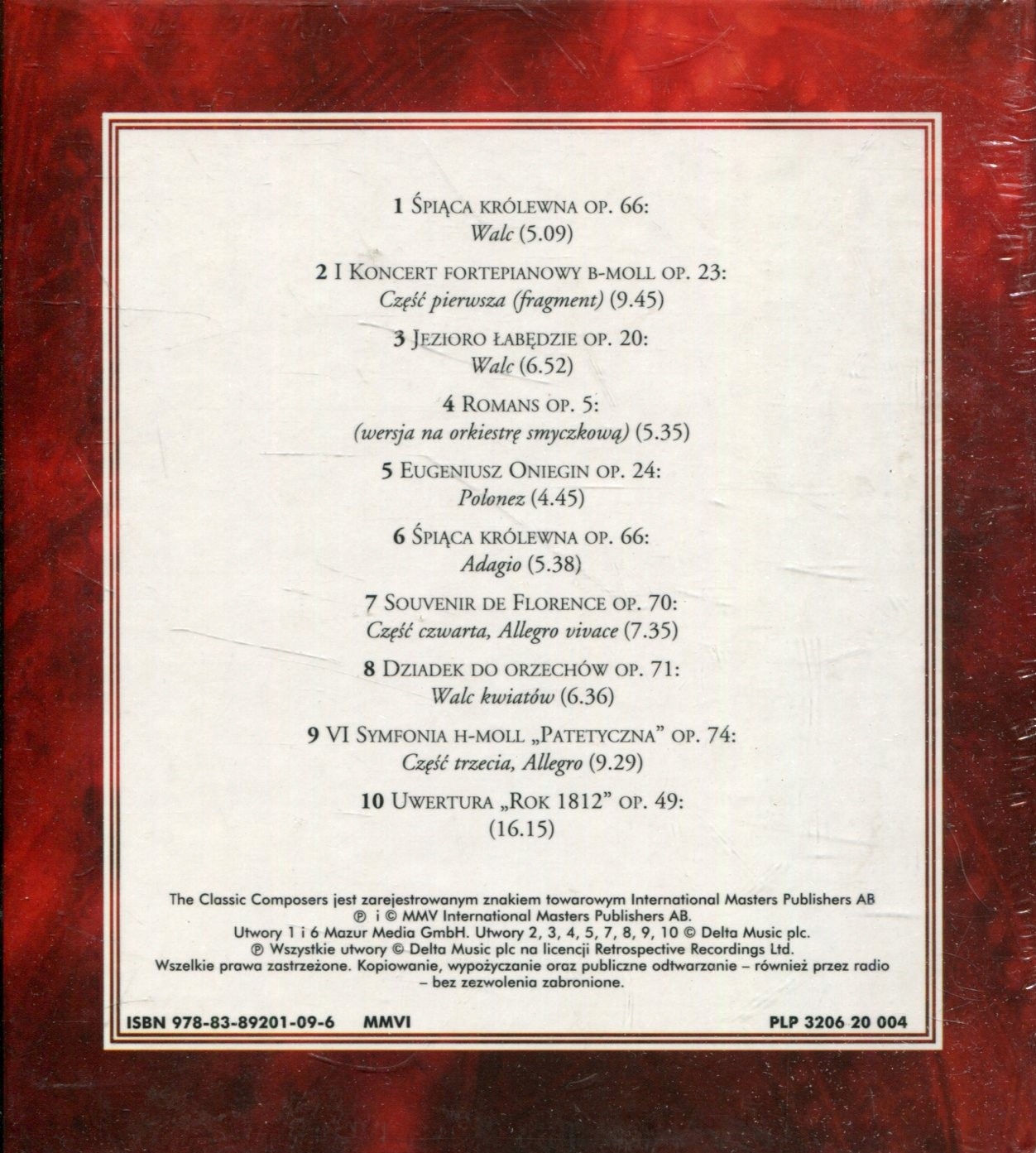 Просматривая «ЧАЙКОВСКИЙ - ПОЭЗИЯ И СТРАСТЬ - CD», вы можете быть уверены, что данный товар из каталога «[rubrica_name]» будет доставлен из Польши и проверен на целостность. В цене товара, указанной на сайте, учтена доставка из Польши. Внимание!!! Товары для Евросоюза, согласно законодательству стран Евросоюза, могут отличаться упаковкой или наполнением.