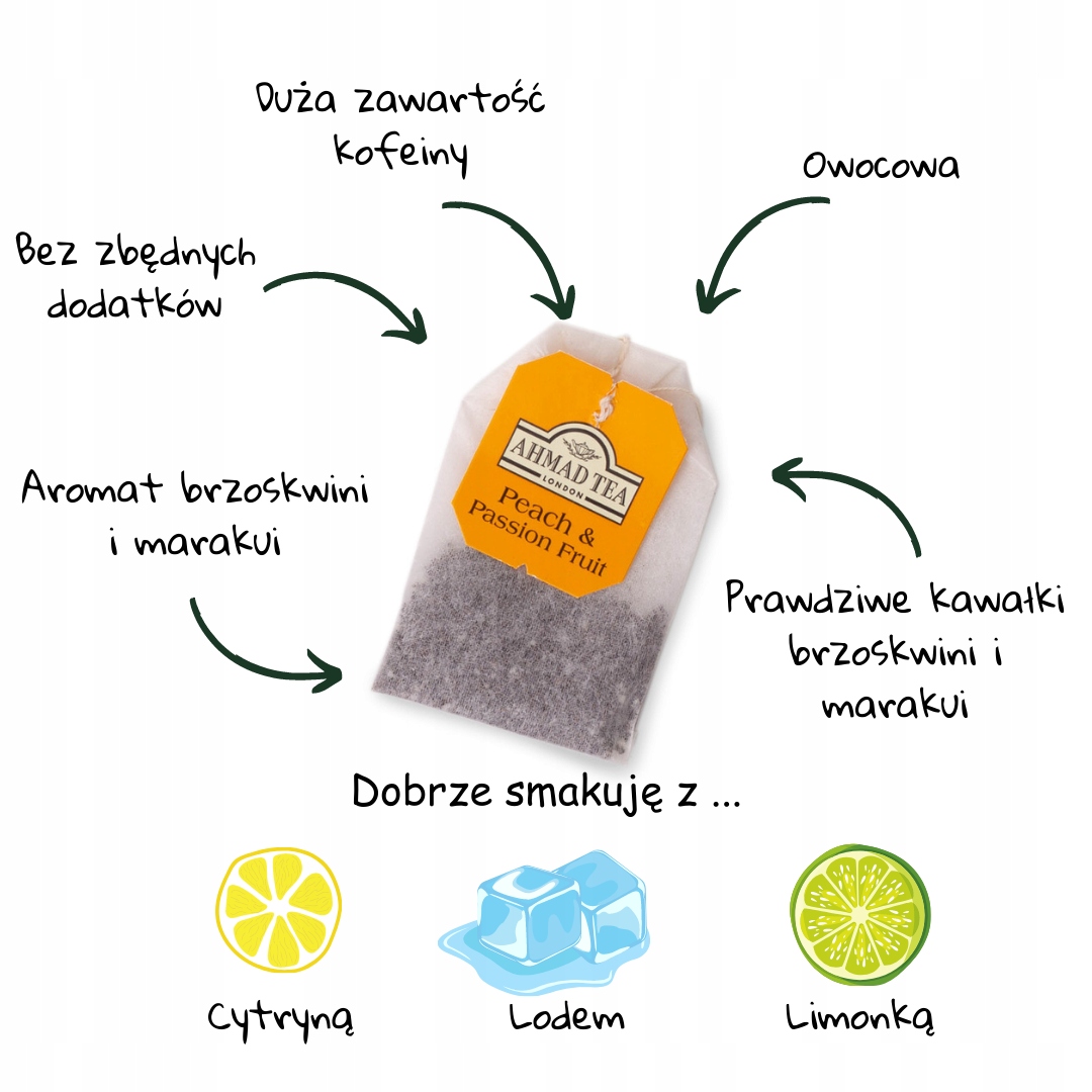 Персик і маракуйя є одним із найкращих смакових поєднань. Ось чому ми створили цей чорний чайзі смаком персика та маракуйї. Урівноважуючи солодкі смаки екзотичних фруктів і високоякісні чорні чаї, ця суміш є обов’язковою чашкою для всіх любителів чаю. TTea Mastersстворюють збалансовану основу зміцних чорних чаїв з Африки. Потім ми додаємо справжні шматочки персика та маракуйї, а також наш ексклюзивний аромат персика та маракуйї. Це додає чаю свіжості >і сонячний фруктовий смак. Стиглий персикі тропічна маракуйя створюють настій винятково фруктовогоз підбадьорливим екзотичним ароматом. Він був улюбленим членом колекції Ahmad Tea вже більше 20 років і є бестселером чорного фруктового чаю у світі!