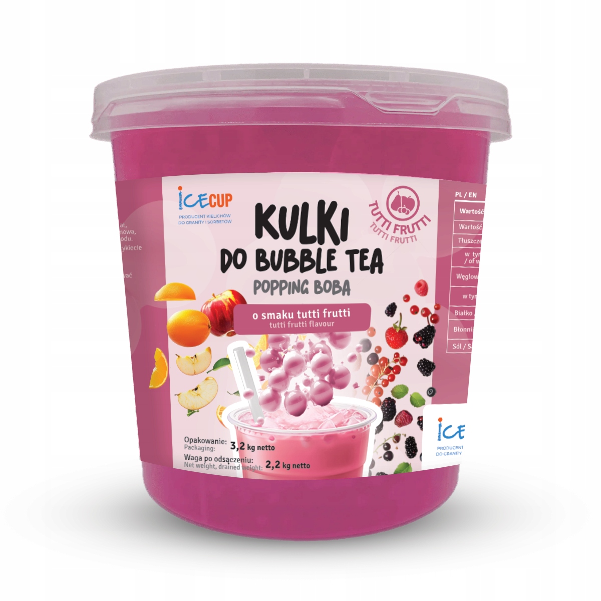 гелеві кульки з рідким тютетом фрутті (мульти -фруктовим) інвертом цукру. Ці маленькі барвисті кульки лопнули в роті, випускаючи освіжаючий фруктовий сік. Завдяки їм напої та десерти не тільки набирають унікальний смак, але й привабливу текстуру та елемент веселощів. Спробуйте боб і винести улюблені напої на абсолютно новий рівень!