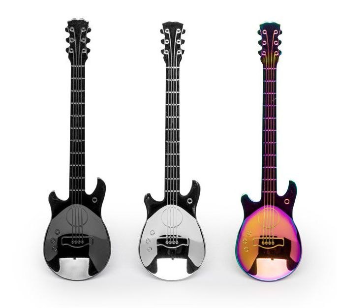 Музичні ложки у формі гітари трьох кольорів, щоб задовольнити різні смаки меломанів. Це ложечки для всіх тих, хто хоче, щоб кожен день пройшов гладко, і все було гладко, коли вони розмішують або підсолоджують ранкову каву чи чай нашою музичною ложкою ;)