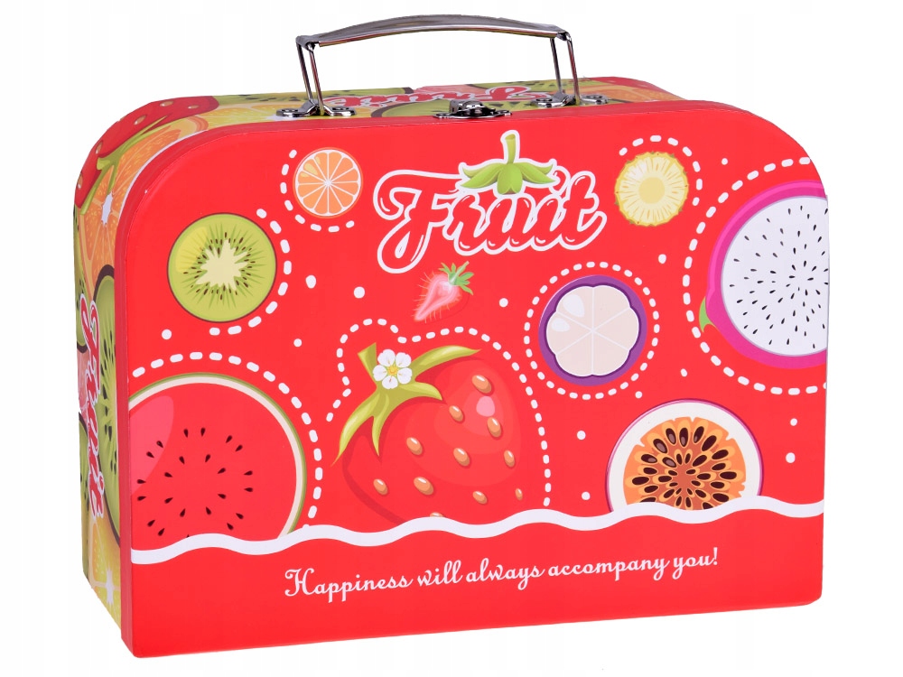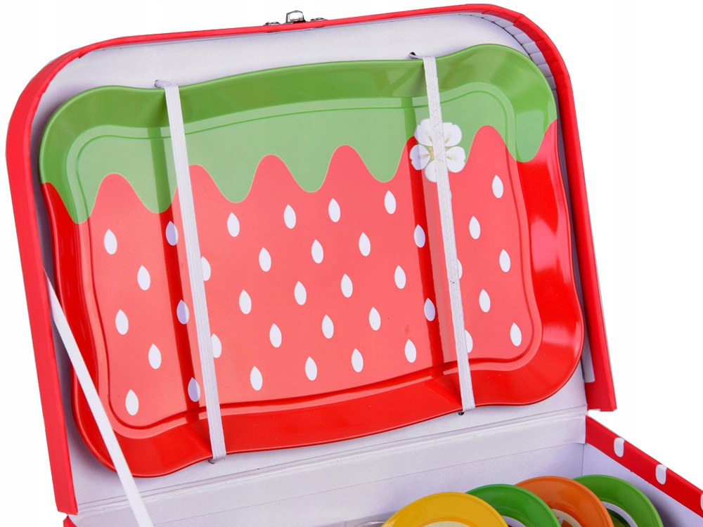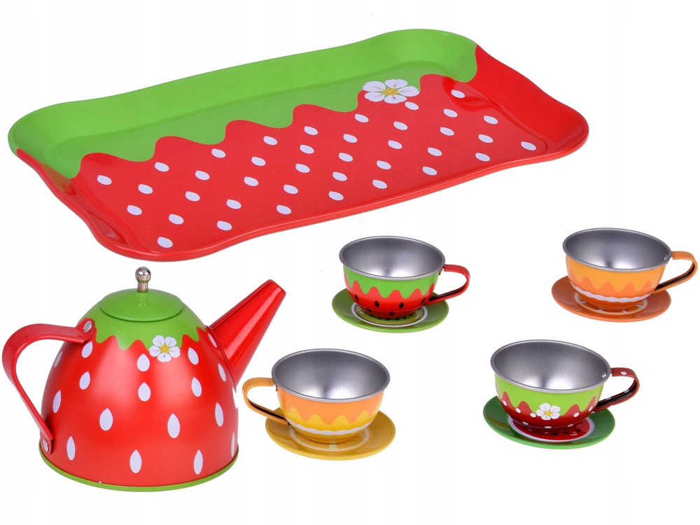 Барвистий набір ідеально відтворює фрукти. Коробка виготовлена з міцного картону і має привабливу графіку з фруктами та додатковими металевими елементами. Його також чудово брати з собою на пікнік, на дитячий майданчик або в парк. Гарний набір, упакований у барвисту та привабливу упаковку у формі коробки, ідеально підходить як подарунок. Відвідайте магазин Jokomisiada, щоб отримати більше барвистих чайних наборів і багато іншого кухонного приладдя.