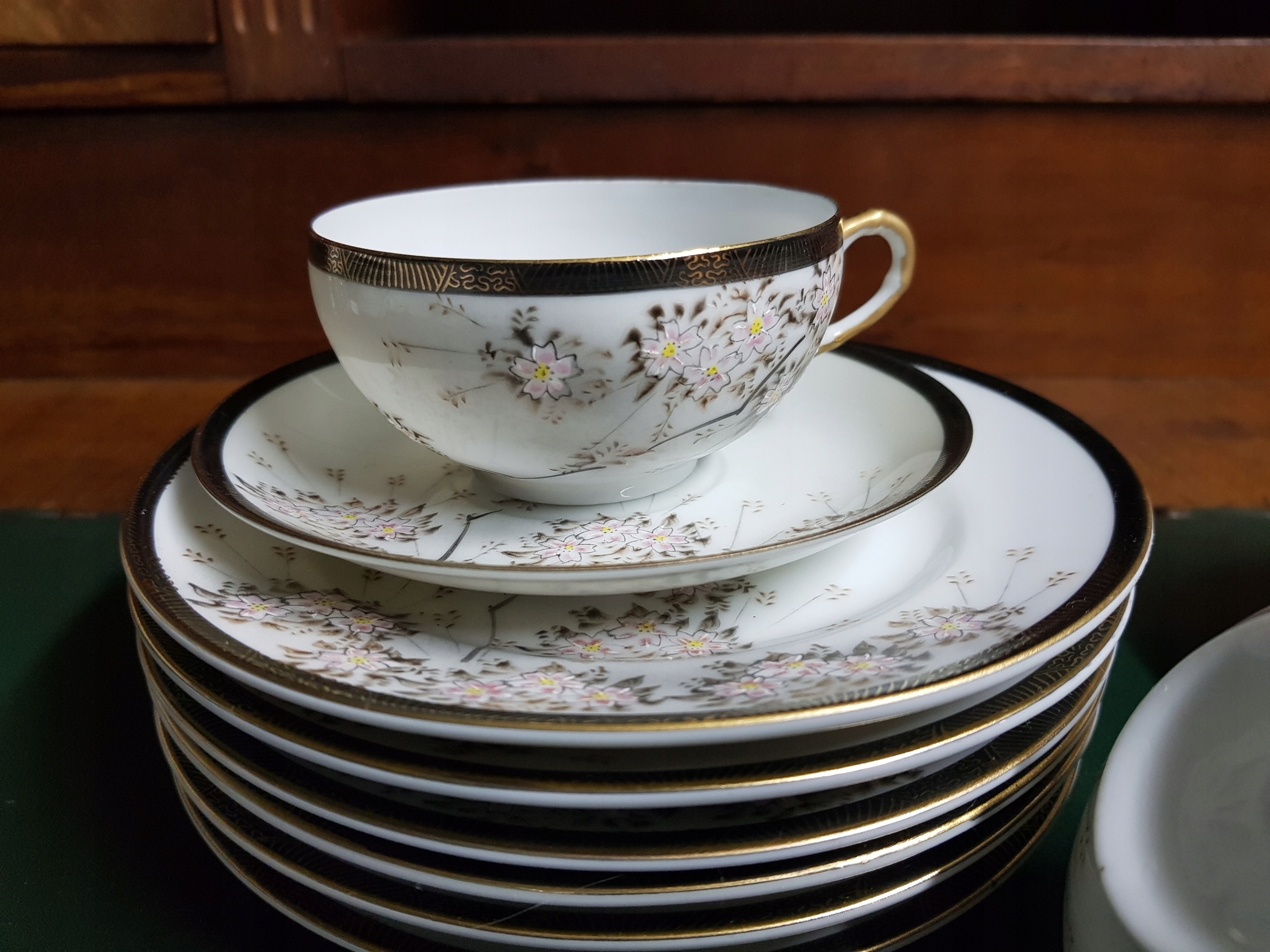 Предмет аукціону - чайний сервіз. Розписані вишні. В наявності 6 наборів. Ціна вказана за 1 комплект. Сервізи відправляються випадковим чином. Всі однаково добре збережені.