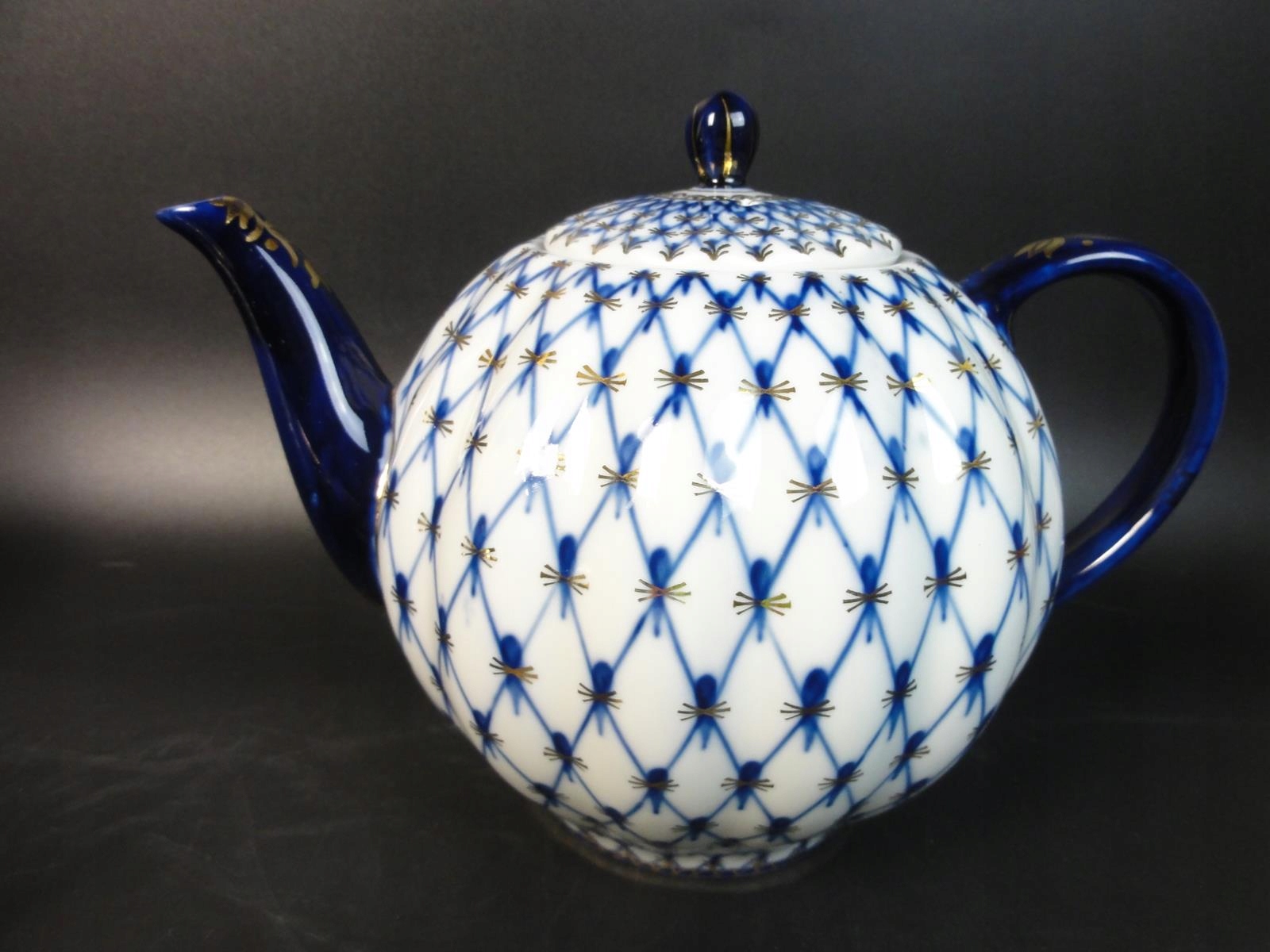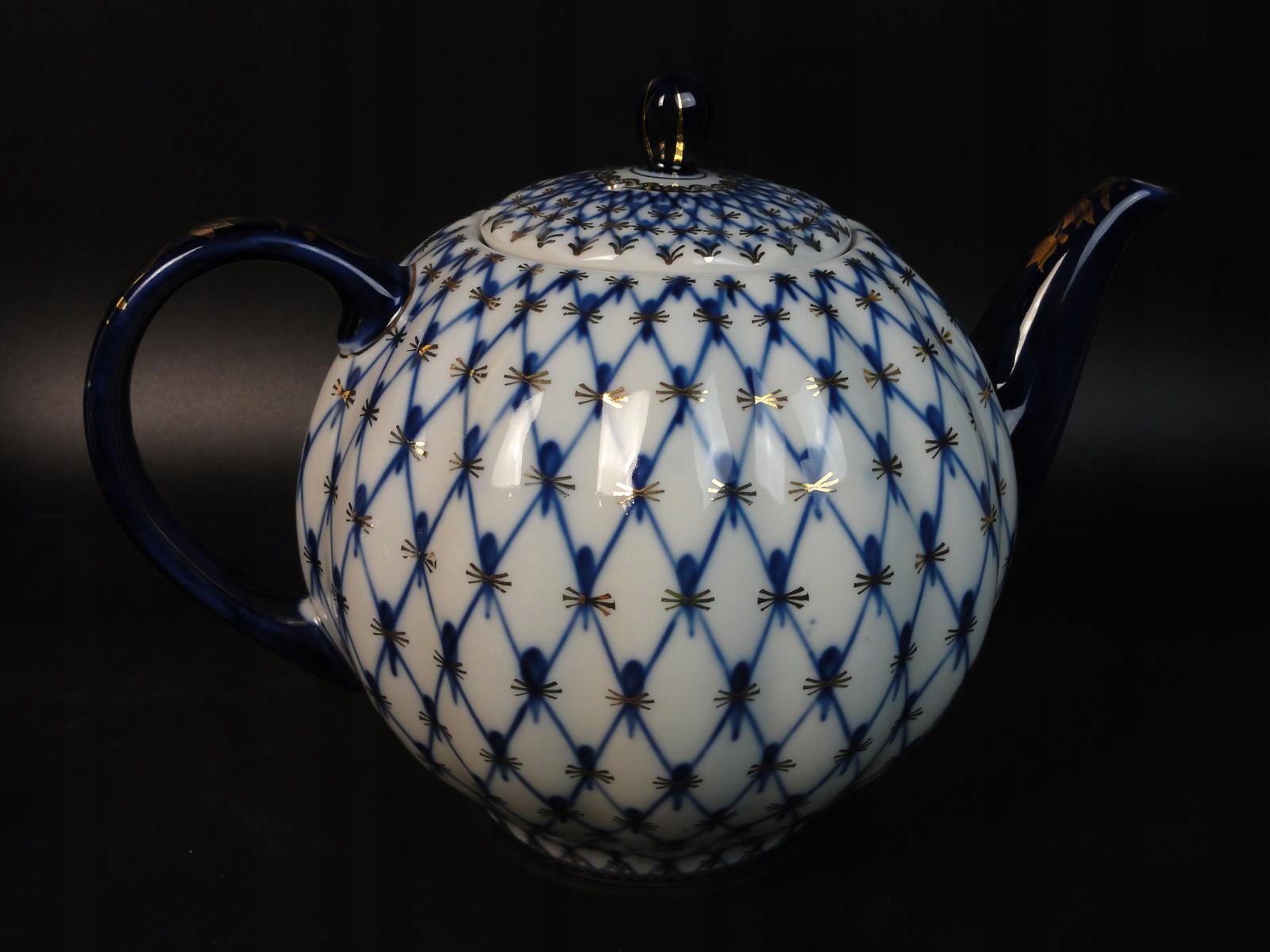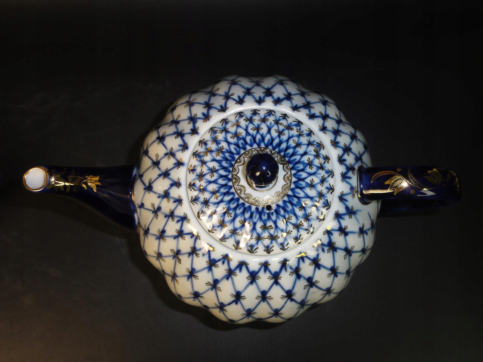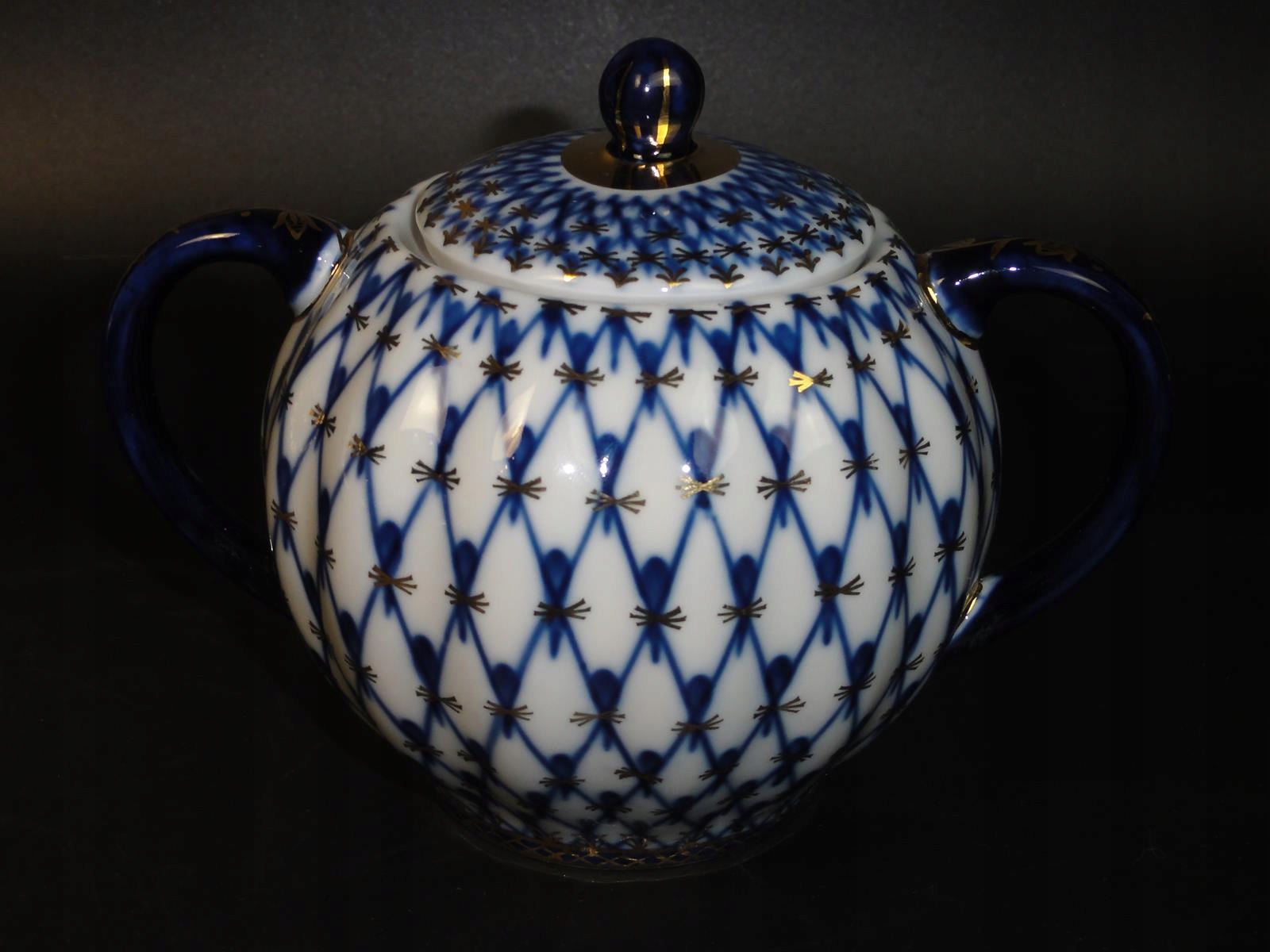 * з білої порцеляни, розписаної вручну кобальтом і золотом,