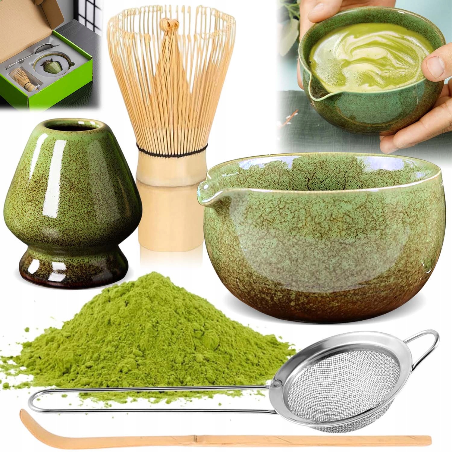 ▶️▶️ЧАЙНИЙ НАБІР МАТЧА, НАБІР З 5 КОМПЛЕКТІВ: МАТЧА БАМБУКОВА МІТЛА ТА ЛОПАТА, КЕРАМІЧНА МАТЧА ТА ТРИМАЧ ДЛЯ МАТЧА ТА СИТТО З НЕРЖАВІЮЧОЇ СТАЛІ, РУЧНА РОБОТА (ЛІСОВО-ЗЕЛЕНИЙ)◀️◀️