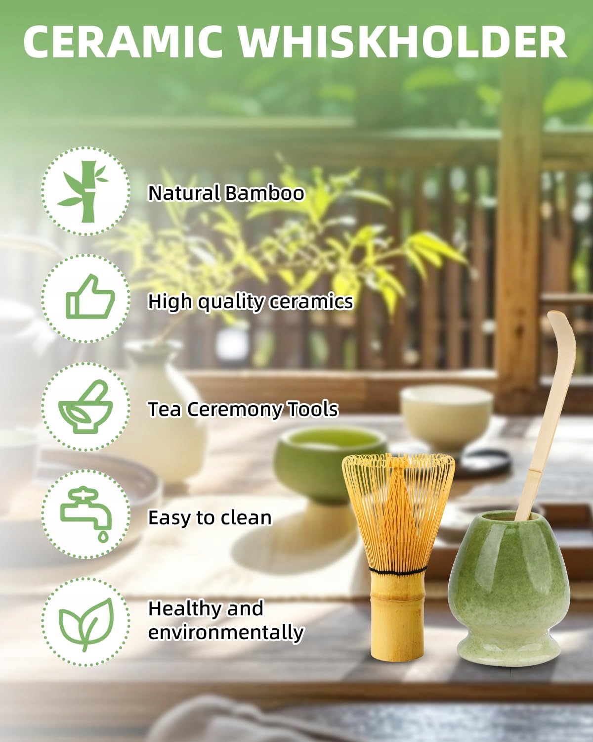 ЧАЙНИЙ НАБІР МАТЧА 5 ЕЛЕМЕНТІВ КЕРАМІЧНЕ СИТТО ДЛЯ ВІДХОДІВ