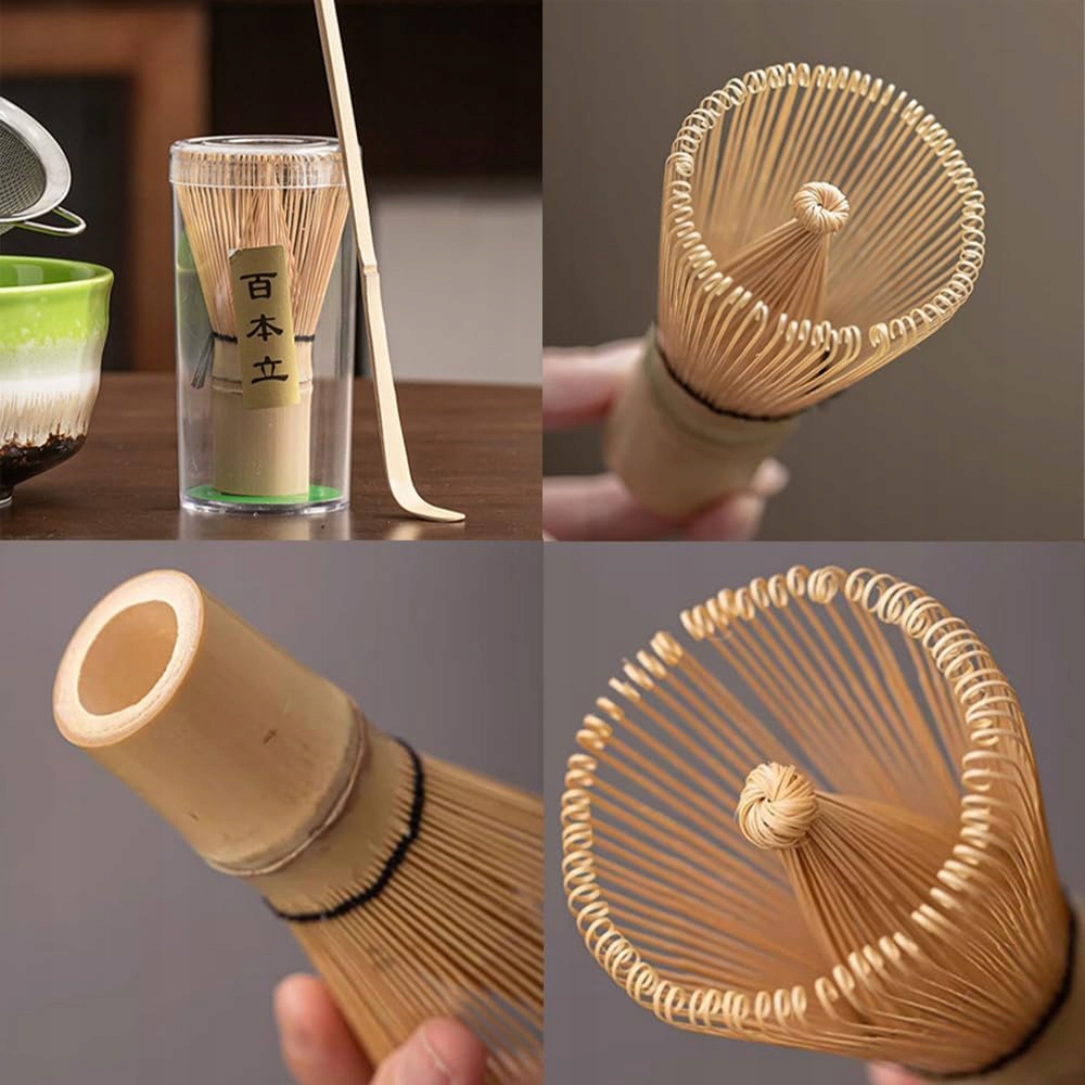 Бамбуковий віночок ручної роботи для матчі, виготовлений із натурального бамбука, легко створює насичену піну без грудок. У поєднанні з бамбуковою ложкою цей віночок і чаша для матчі відсилають до традиційної японської чайної церемонії.
