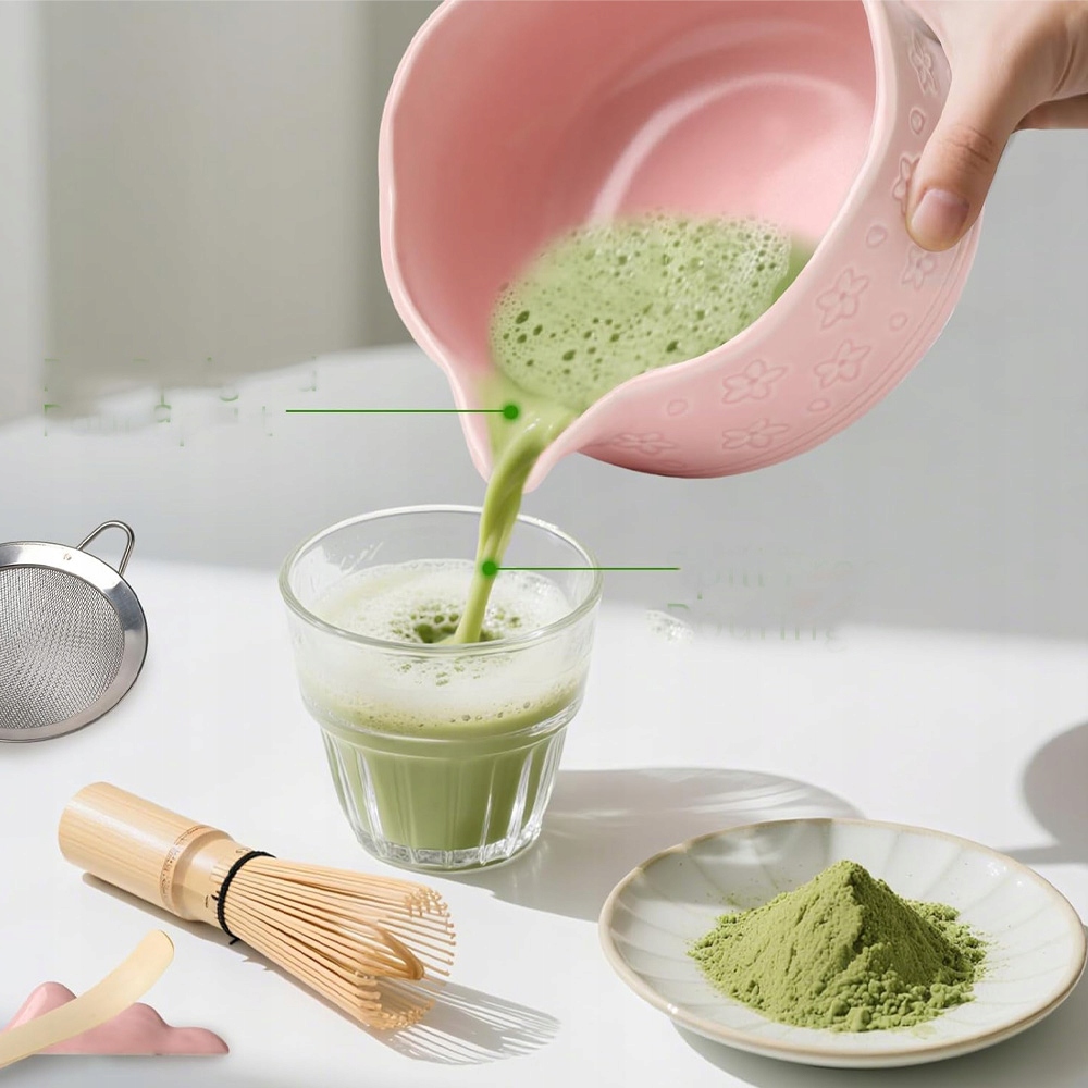 ✅Чаша має ретельно розроблений носик, який забезпечує плавне та контрольоване виливання, збагачуючи ритуал приготування матчі.