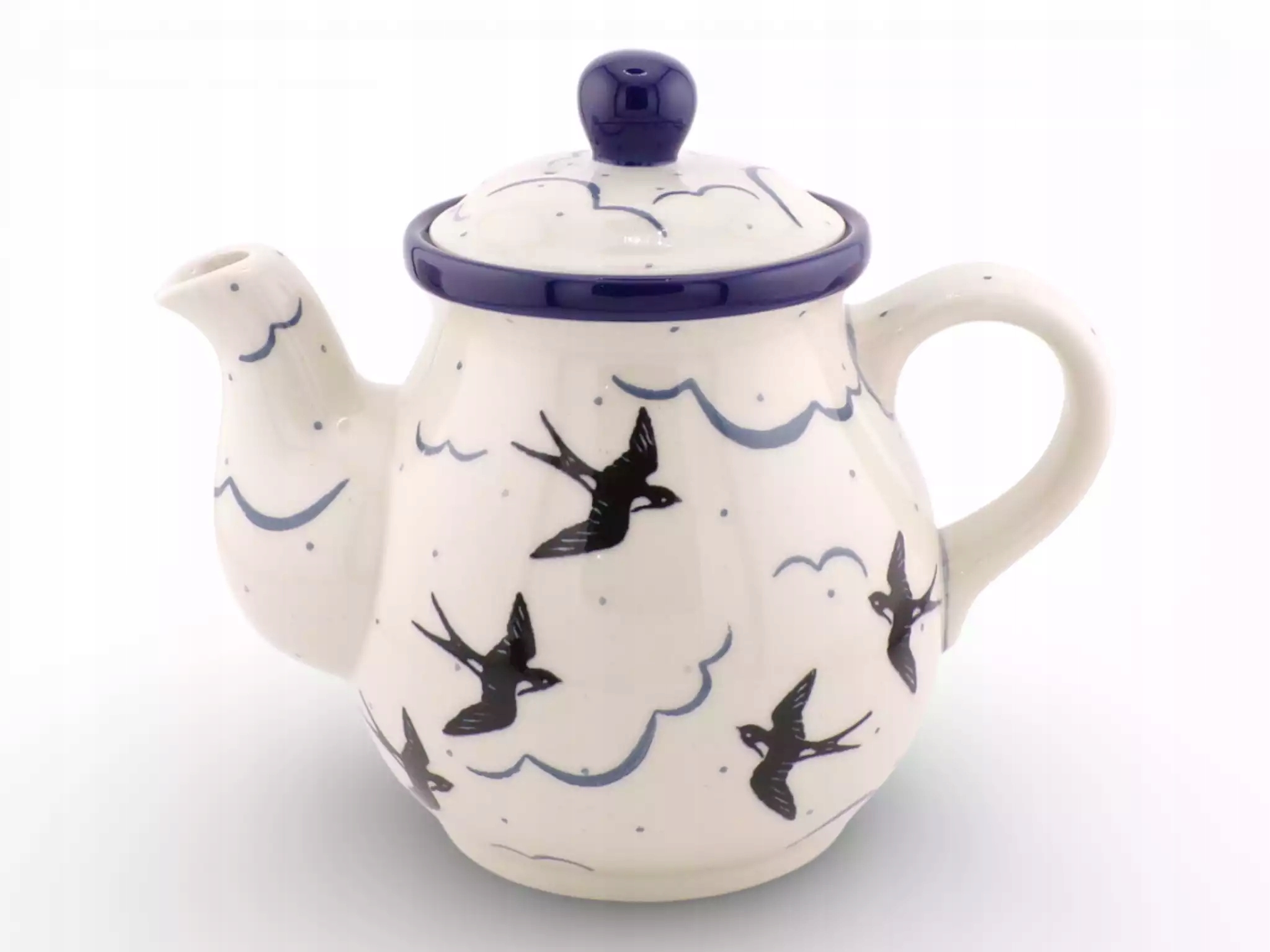 Чайник 600мл з вбудованим ситечком – польська кераміка від Ceramika Artystyczna Bolesławiec Представляємо керамічний чайник ємністю 600 мл, ідеально підходить для заварювання чаю та трав. Цей глечик, виготовлений із болеславецької глини та розписаний вручну, поєднує в собі функціональність і красу традиційної майстерності. Вбудоване ситечко всередині чайника робить його ідеальним рішенням для заварювання розсипного чаю або трав, пропонуючи повний смак у кожній чашці. Його також можна використовувати як більший чайник для есенції. Основні особливості: Ємність: 600 мл – ідеально підходить для заварювання чаю або трав Висота: 16 см - зручний розмір, ідеальний для щоденного використання Вбудоване ситечко – ідеально підходить для заварювання розсипного чаю та трав 100% ручний розпис - традиційна кераміка з Болеславця Фарбування, нанесене перед склінням - забезпечує довговічність та інтенсивність кольорів Стійкий до високих температур - посуд для духовки та мікрохвильовки Можна мити в посудомийній машині - легко підтримувати в чистоті Безпечний при контакті з харчовими продуктами - відповідає найвищим стандартам Наш чайник - це не тільки практичний елемент для заварювання чаю, але й елегантна прикраса, яка додасть частинку польських традицій на вашу кухню. Принесіть у свій дім тепло болеславецької кераміки - замовляйте вже сьогодні! Прикраса 2905 «Літаючі ластівки» — це унікальний візерунок, розписаний вручну на болеславецькій кераміці, який привертає увагу легкістю та свободою представлених мотивів. Художньо розписані ластівки, зображені в динамічному польоті, надають стравам свіжості та природного шарму. Тонкі хмари та ніжні дрібні кобальтові крапки створюють фон, натхненний яскравим літнім небом, завдяки чому прикраса виглядає сучасно та водночас залишається вірною болеславецькій малярській традиції. Flying Swallows 2905 ідеально підходять для сучасних, мінімалістичних і скандинавських інтер'єрів, привносячи в стіл легкість і візуальне дихання. Це прикраса, яка виділяється на тлі класичних кобальтових візерунків, але сумісна з ними - ластівки чудово поєднуються з ніжними, простими прикрасами та мотивами природи. Це ідеальний вибір для людей, які шукають кераміку з Болеславця з легкою, приємною естетикою, яка приваблює погляди та додає характеру повсякденній їжі. Декорація 2905 робить кожну сервіровку столу більш індивідуальною, художньою та повною руху, що робить її популярним вибором як для щоденного використання, так і для подарунка. Художня кераміка Bolesławiec є синонімом найвищої якості та довговічності. Відомий у всьому світі як найбільший виробник кераміки з Болеславця, він виділяється своїм широким асортиментом понад 7000 прикрас і вражаючою кількістю понад 1700 форм продукції. Кожна страва є результатом багаторічної традиції майстерності, розвиток якої можливий завдяки інноваціям і співпраці з Факультетом кераміки Науково-технічного університету AGH у Кракові. Таке поєднання традицій і сучасності робить посудину Ceramika Artystyczna Bolesławiec надзвичайно довговічною та стійкою до мінливих умов. Продукція Bolesławiec Artistic Ceramics — це посуд, оздоблений польовошпатовою глазур’ю найвищої якості, яка не тільки захищає від пошкоджень, але й забезпечує надзвичайну стійкість кольору навіть після багаторазового миття в посудомийній машині. Вся продукція Boles