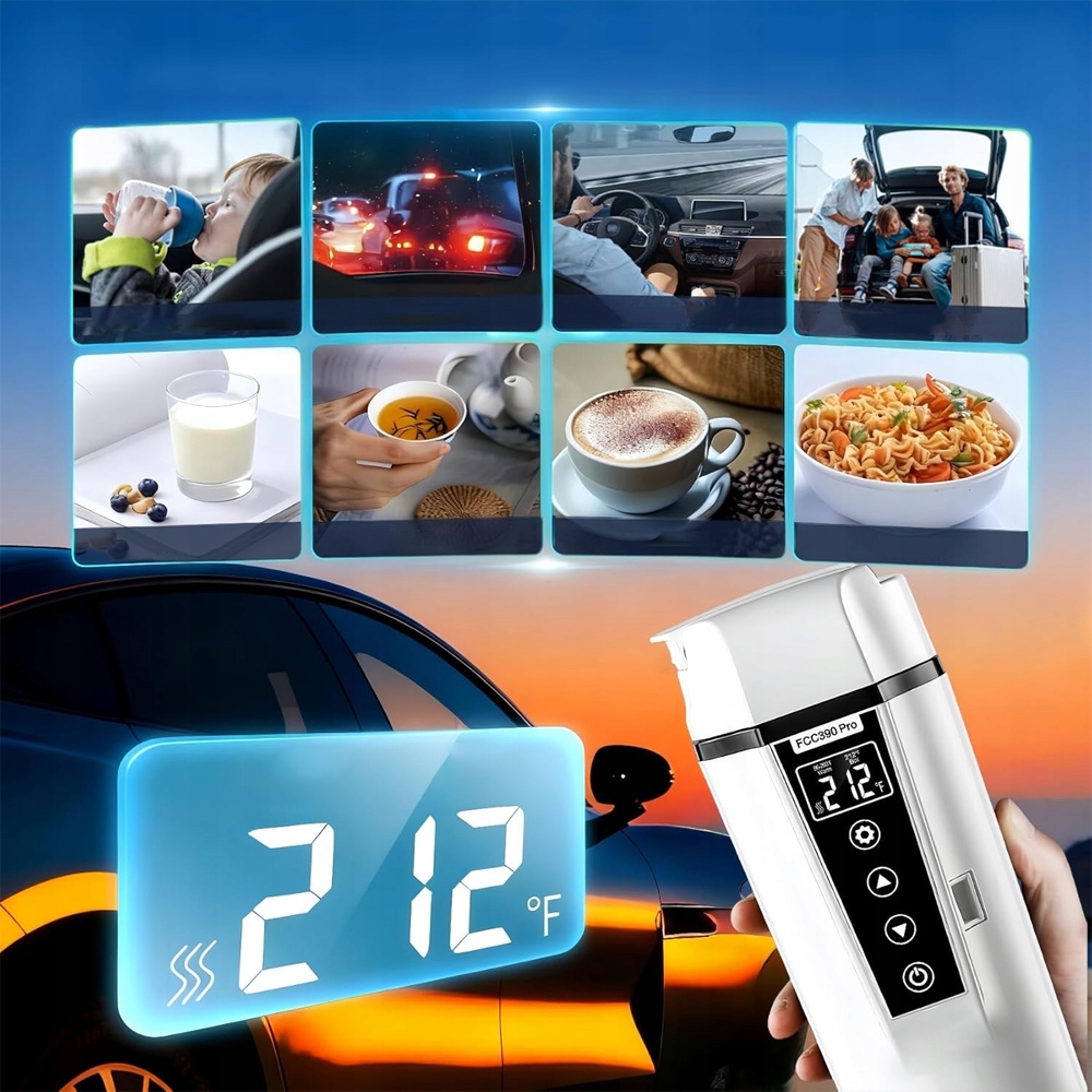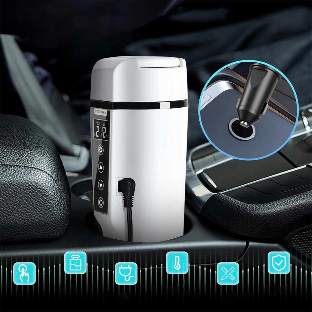 Цей автомобільний чайник 12 В/24 В має великий світлодіодний дисплей із розумною сенсорною панеллю для регулювання температури та чіткого зчитування. Його портативний дизайн робить його придатним для автомобілів, таксі, вантажівок і навіть для подорожей з немовлятами. Зробіть вашу подорож ще приємнішою!