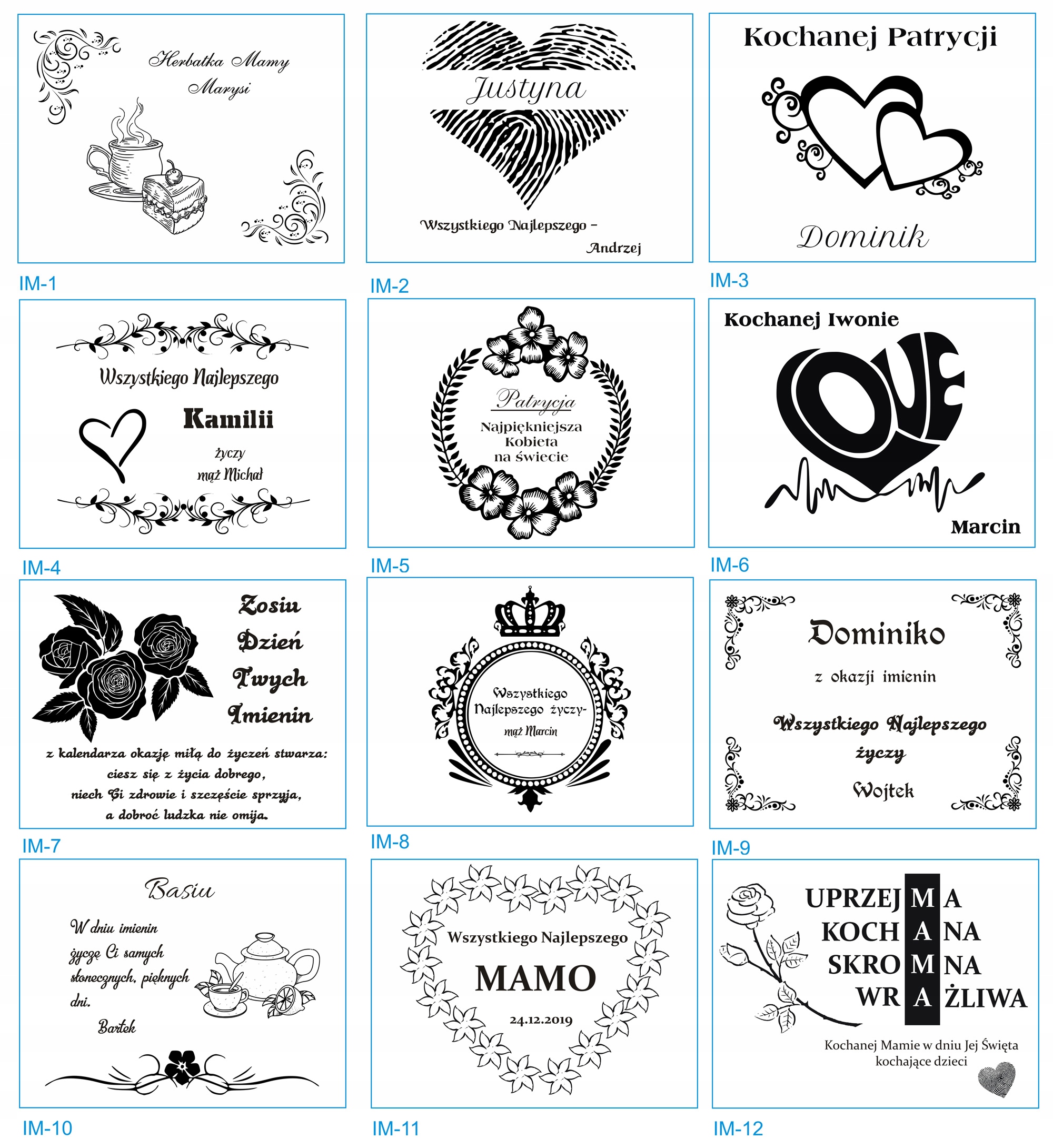 * Усі дані, необхідні для персоналізації дизайну: імена, дати тощо .