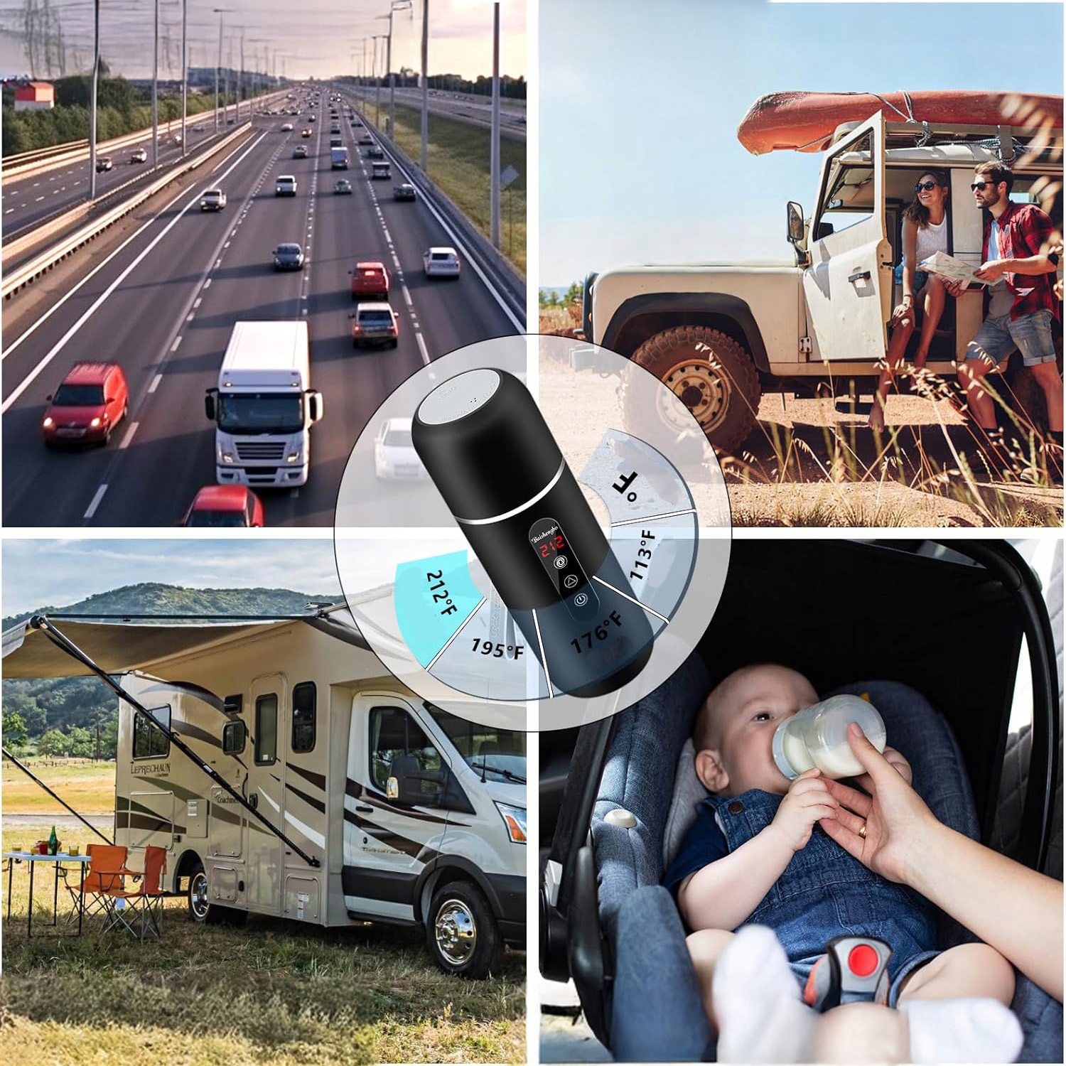 Портативний підігрівач для пляшок підтримує дві напруги, перемикаючись між 12 В і 24 В, підходить для всіх транспортних засобів з роз’ємом автомобільного прикурювача 12-24 В, а гніздо прикурювача є «встав і працюй». Незалежно від того, подорожуєте ви автомобілем, вантажівкою чи кемпером, наш туристичний чайник надасть вам доступ до гарячої води в будь-який час і в будь-якому місці.