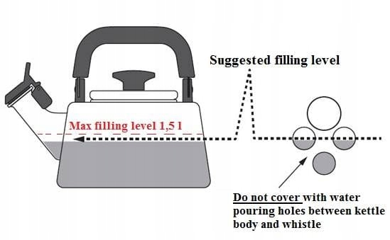 Свисток піднімається високо, що полегшує наливання води в чайник, не піднімаючи кришку.