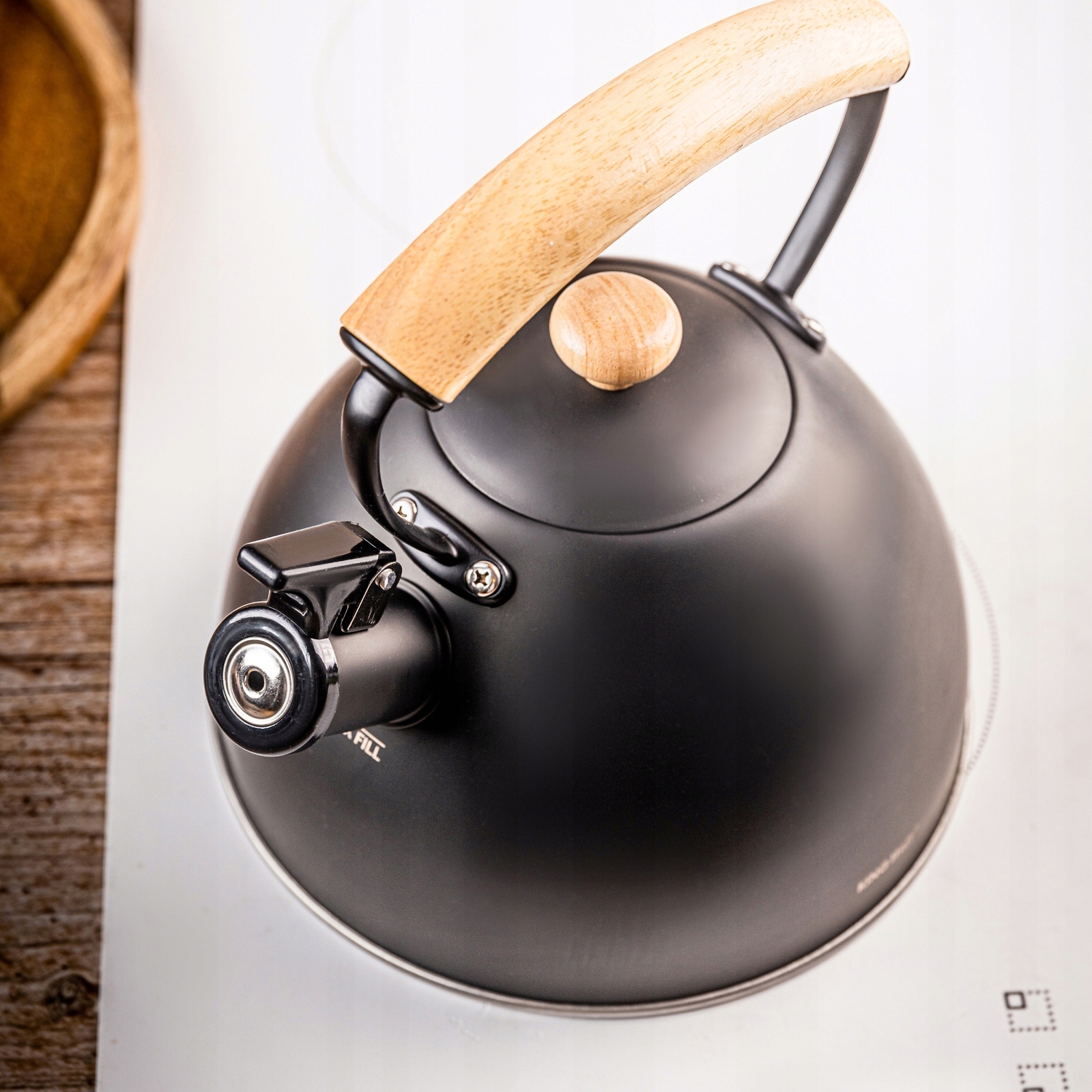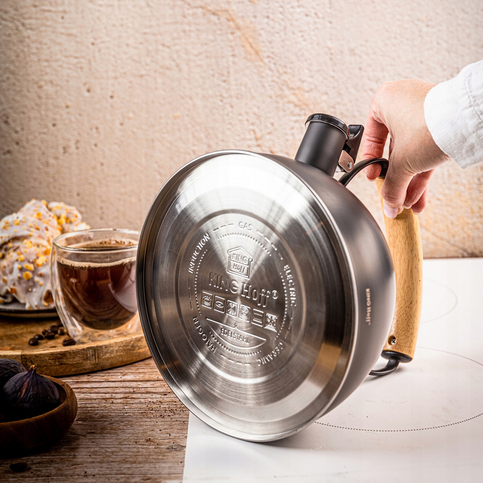 ✨ Чайник KINGHoff 2.5л чорний зі свистком, індукція, дерево, сталь