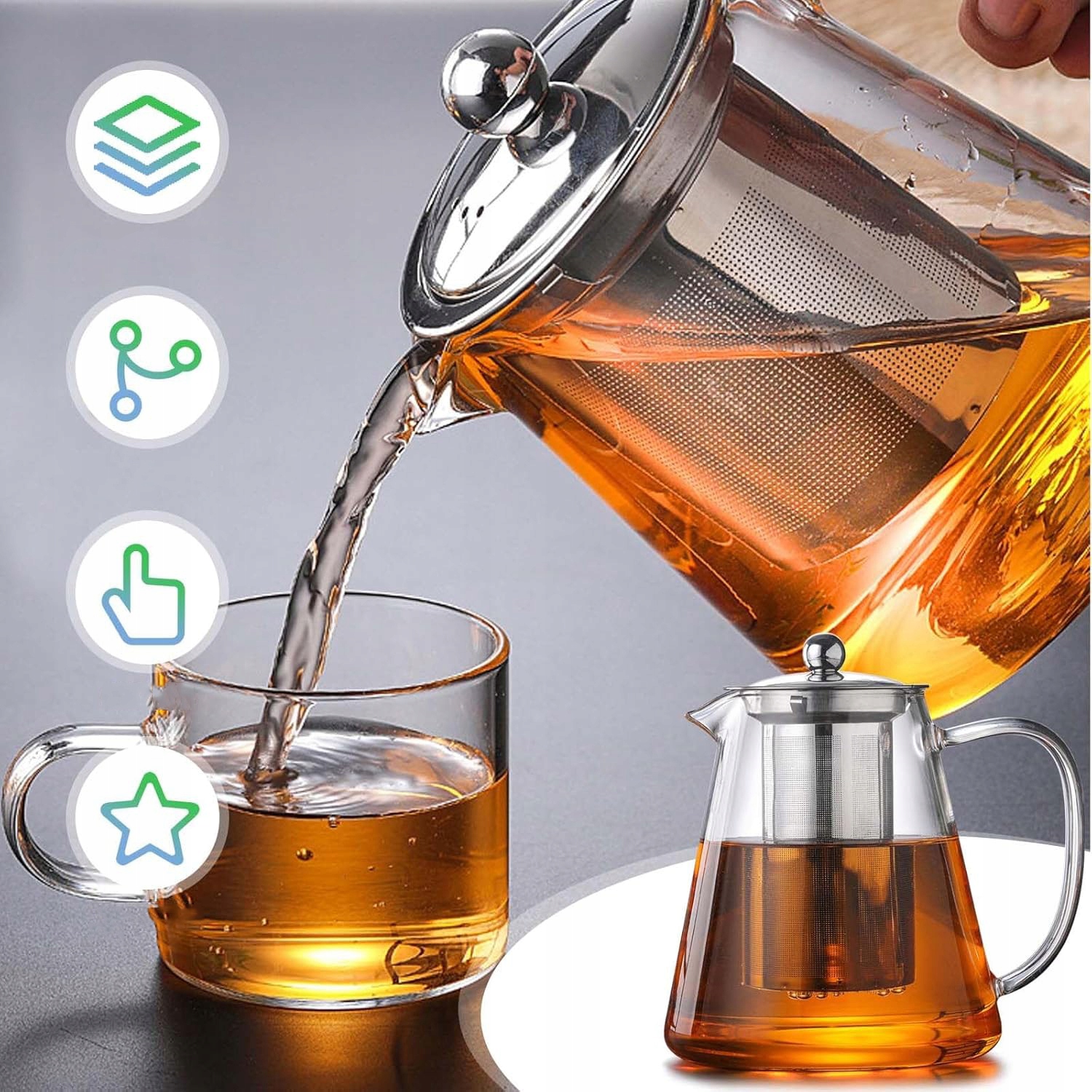 Для заварювання та приготування чаю, підходить для мікрохвильової печі, електричного пальника, газової плити, електричної керамічної плити та плити. Ідеально підходить для приготування високоякісного гарячого і холодного чаю з розсипним чаєм, чаєм в пакетиках, ароматним чаєм і трав'яним чаєм