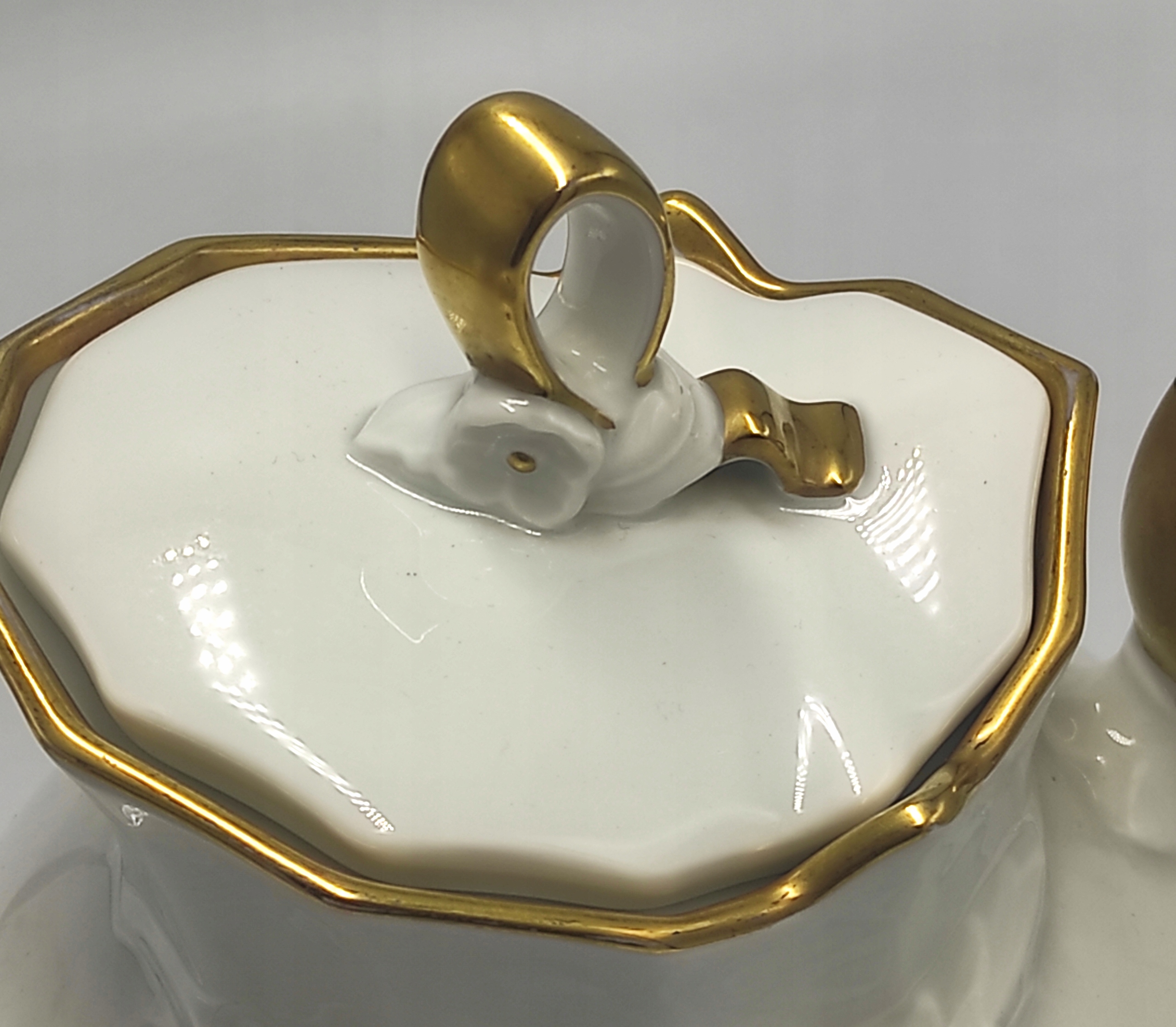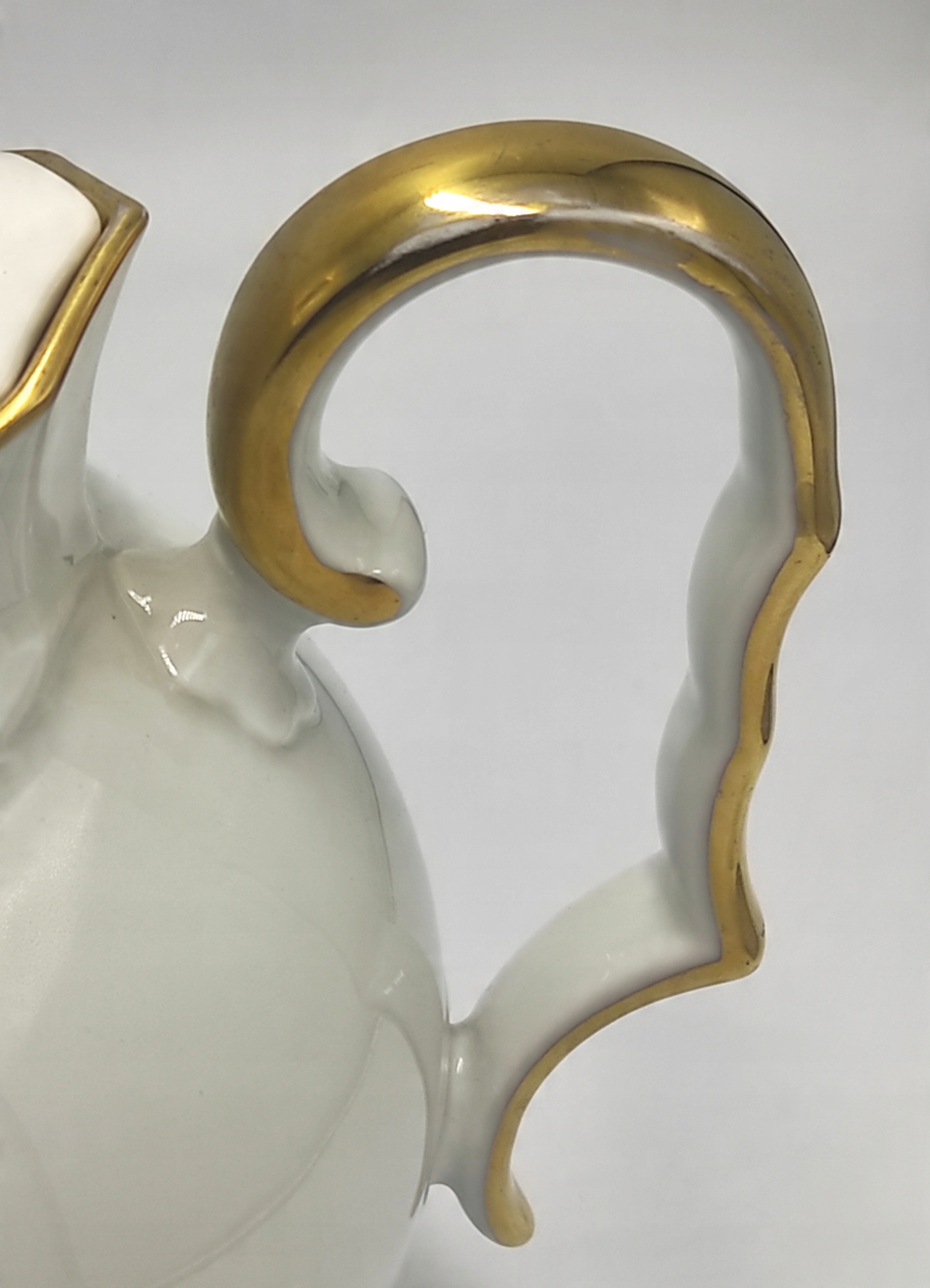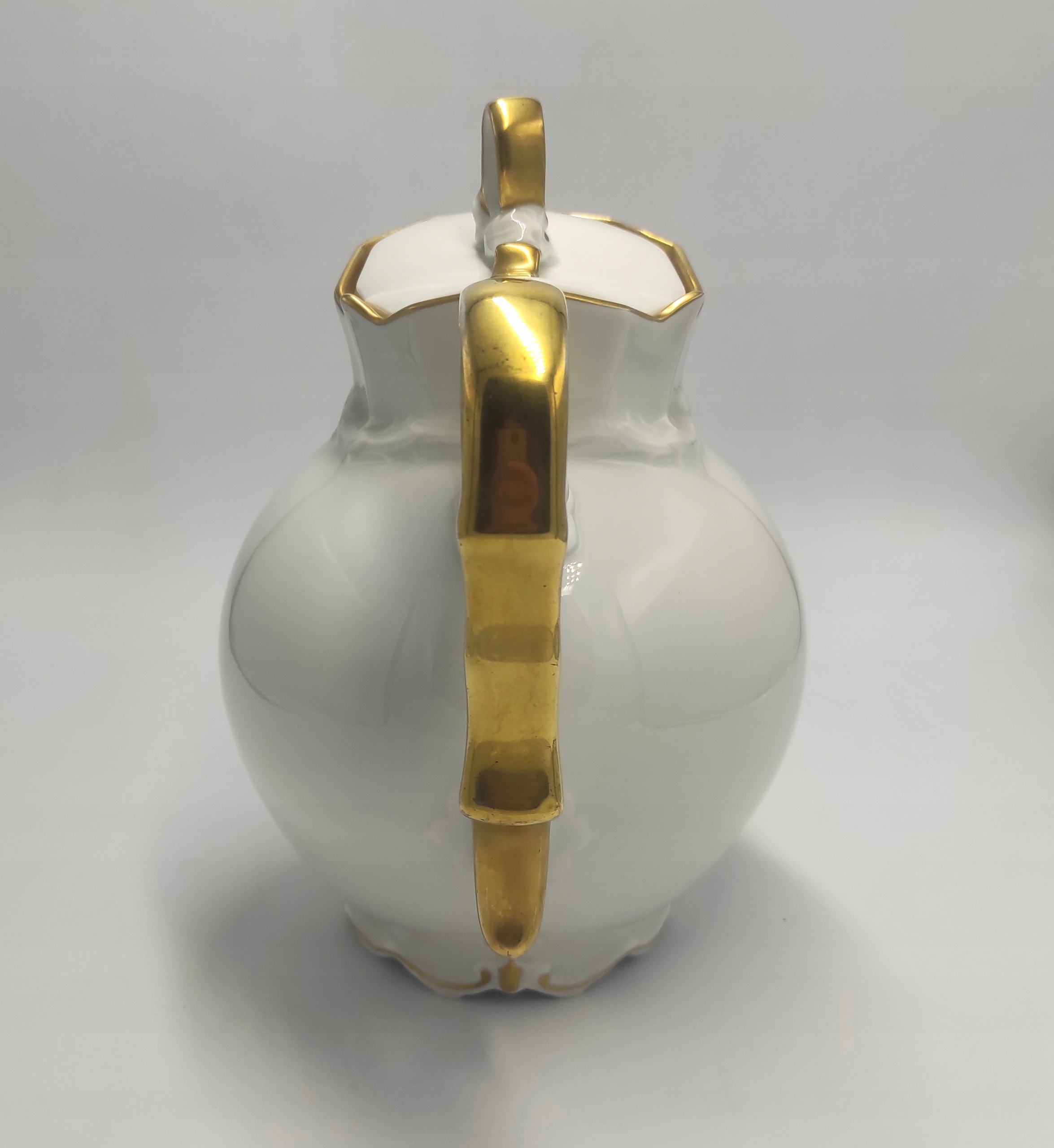 Виготовлено з білої порцеляни найвищої якості. Його фантастична, оригінальна форма робить глечик просто «ідеальним», як випливає з назви. Тонкі рельєфи чудово гармонують з густою позолотою. Форма ручки неймовірно зручна, що тут необхідно, тому що глечик стає трохи важким від вмісту. Підписано внизу. Безумовно, це буде дуже привабливий функціональний елемент столу.