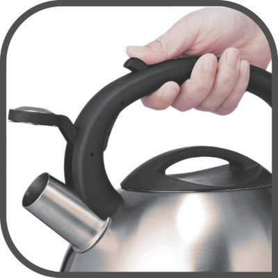 Чайник оснащений стаціонарним свистком, який подає гучний сигнал, коли вода закипає. Завдяки гучному свистку ми точно не забудемо про розміщений на ньому чайник. Оскільки свисток постійно прикріплений, нам не потрібно турбуватися про його втрату.