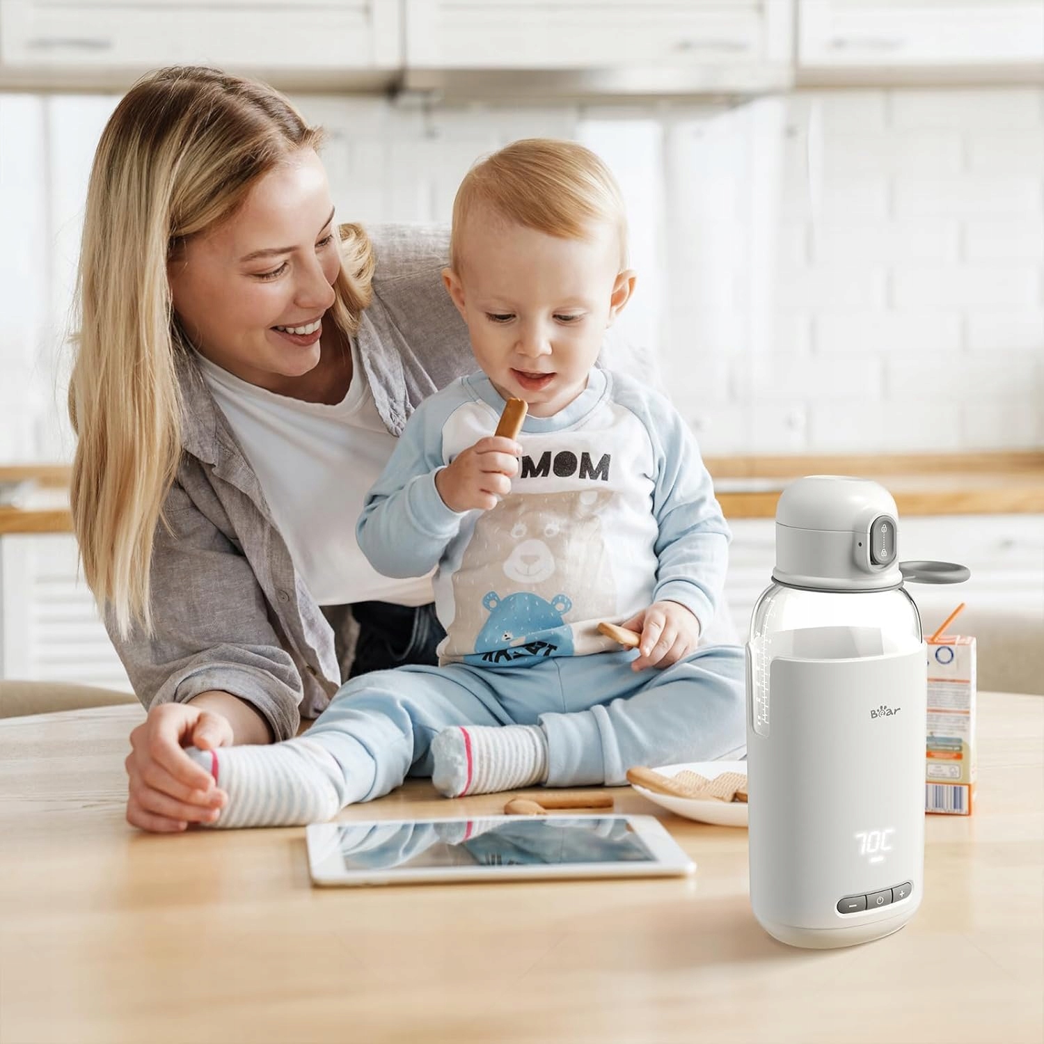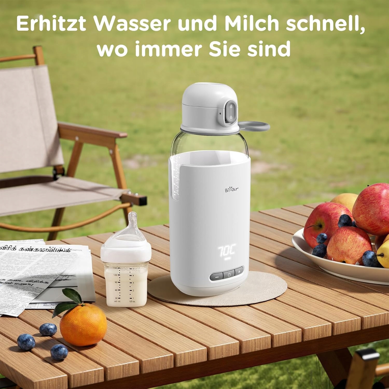 - 【Молоко можна приготувати будь-де】: Порада: для повного заряджання цього продукту потрібно 6 годин. Маленький дорожній чайник дозволяє легко нагріти воду під час подорожі. Він поміщається в дорожню сумку або може бути прикріплений до коляски, щоб ваша дитина отримувала тепле молоко всюди. Він живиться від акумуляторної батареї, і його можна зручно заряджати через настінну розетку, пристрій у вашому автомобілі або навіть через кабель USB на вашому комп’ютері.