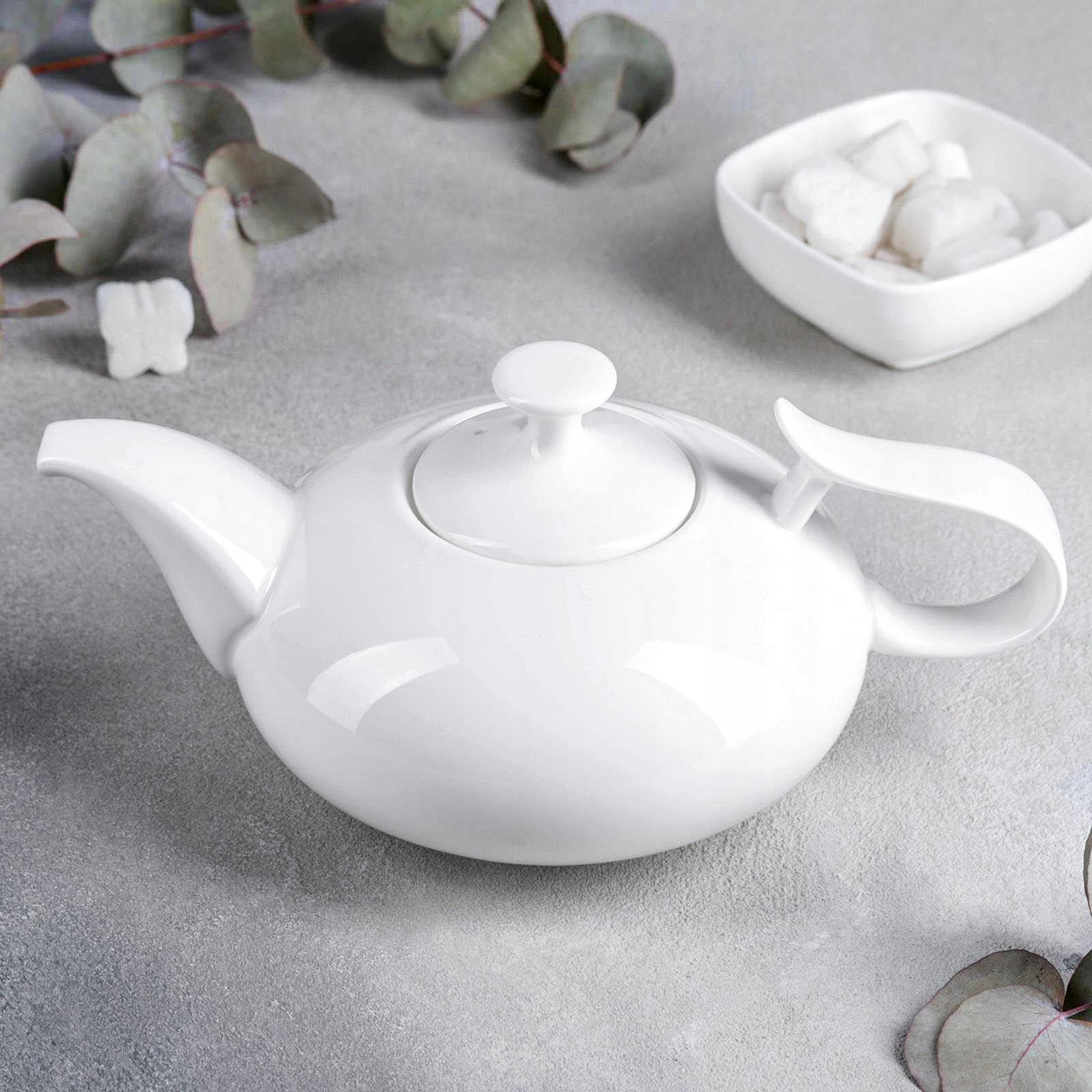 Маленький стильний білий порцеляновий чайник 450 мл.