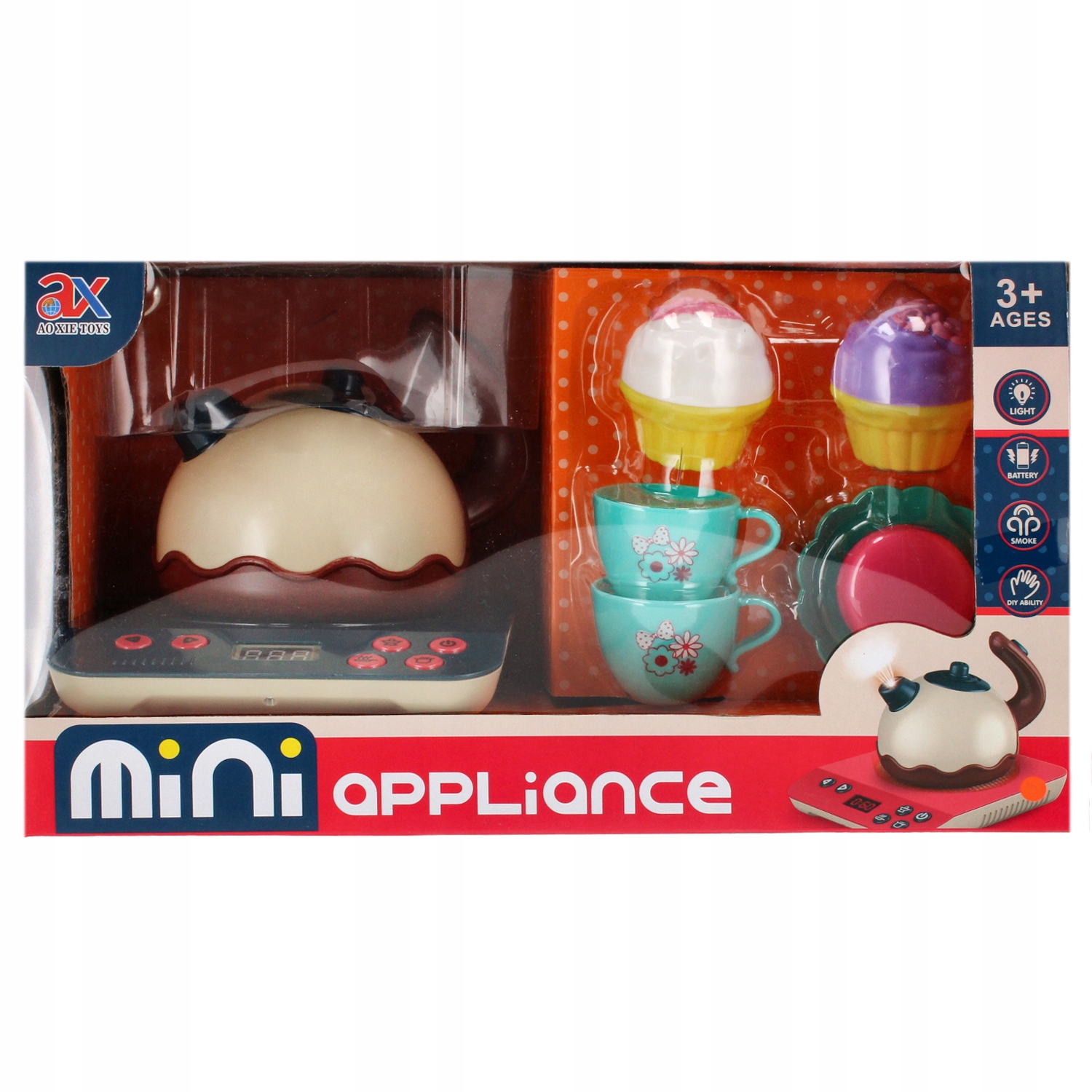 Переваги продукту: чайник має звукові та світлові ефекти - кипляча вода, весела мелодія, синє підсвічування, до чайника йде плита з нагрівальною плитою, плита має звукові та світлові ефекти, кнопки, якими можна задавати програми приготування, «+» і «- " кнопки, які можуть імітувати підйом або підйом, знижуючи температуру нагрівання