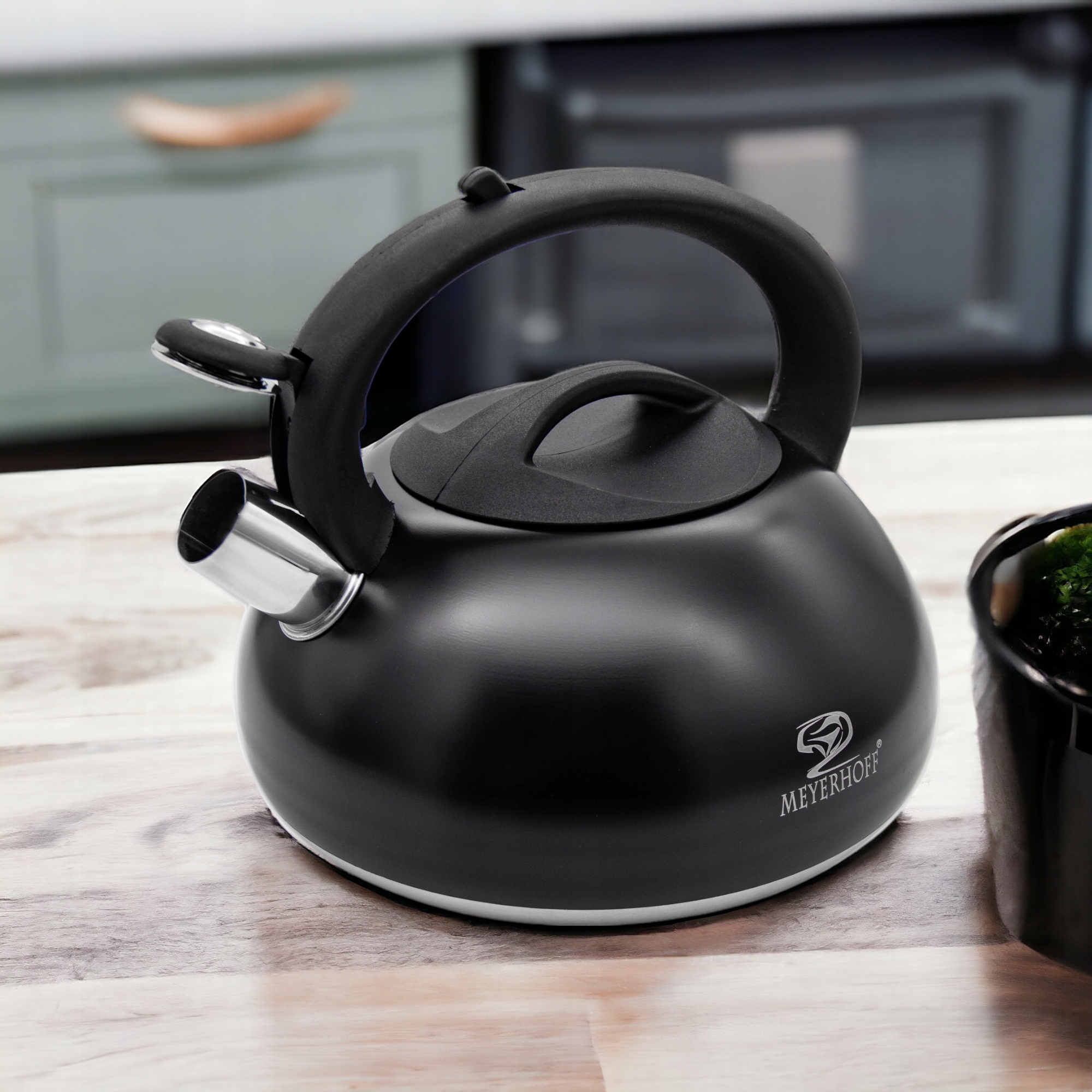Чайник Meyerhoff виготовлений з високоякісної нержавіючої сталі. Дно чайника забезпечує рівномірний розподіл тепла, заощаджуючи енергію. Підходить для всіх типів плит, включаючи індукційні. Має зручну ручку, що не нагрівається та свисток, що повідомляє про закипання води.