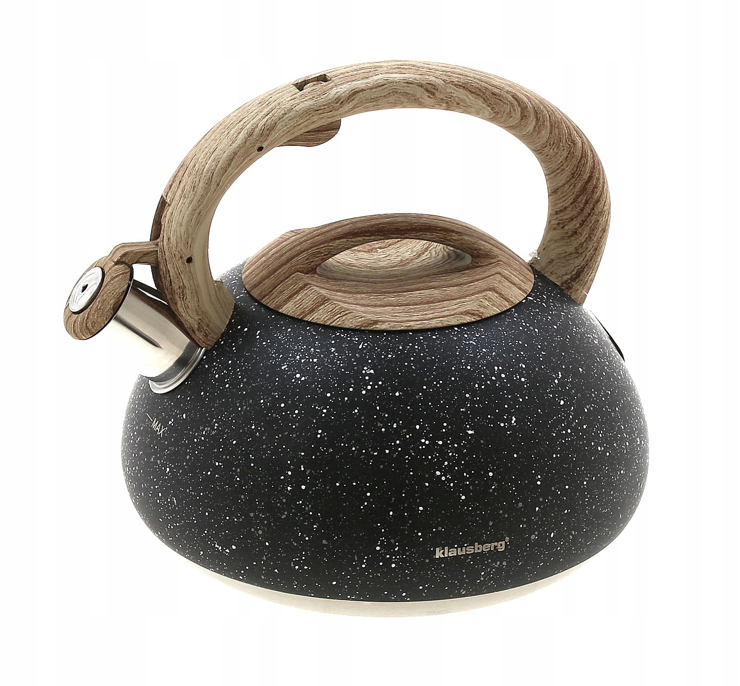 - Високоякісний чайник із нержавіючої сталі зі свистком з термостійким мармуровим покриттям.