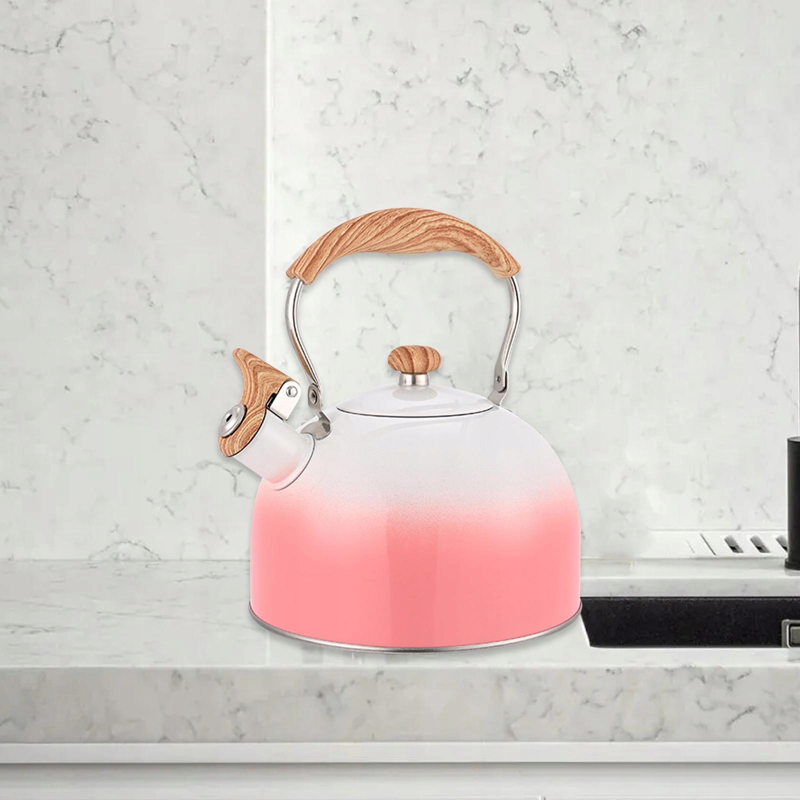 Чайник зі свистком і кришкою для пропарювання води, рожевий