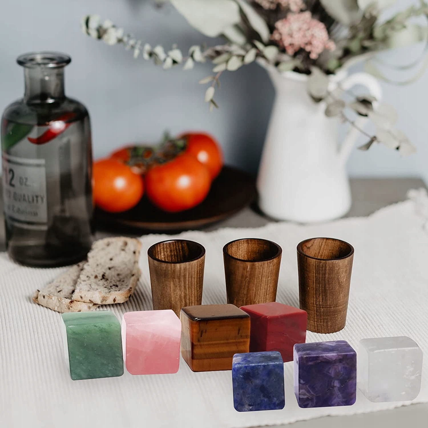 - 7 ЧАКР: Набір цілющих кристалів складається з 7 каменів із різними функціями: кристал червоної яшми, кристал аметисту, кристал рожевого кварцу, кристал блакитної головної жилки, кристал прозорого кварцу, кристал тигрового ока та кришталевий авантюрин.