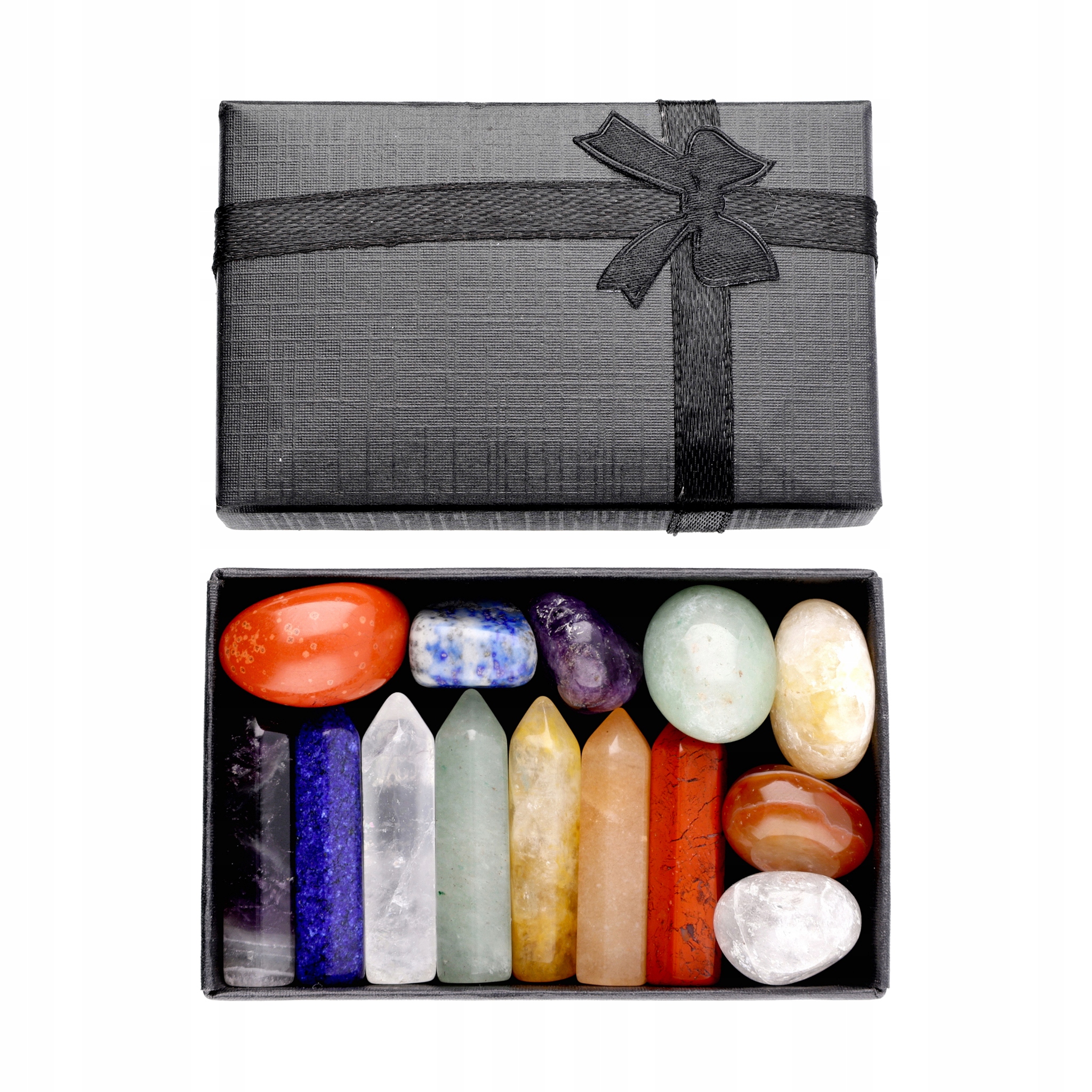 Чакри. Набір каменів до 14 шт. Натуральні різнокольорові камені в коробці