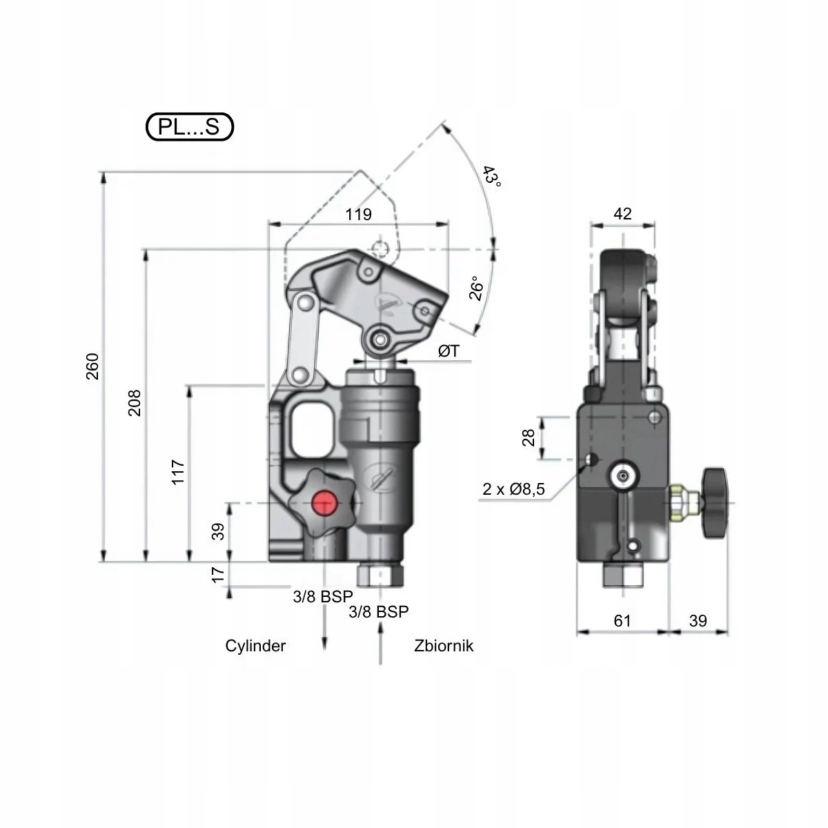 - З’єднувальна муфта: різьба 3/8" (дюйма) для гідравлічних ліній